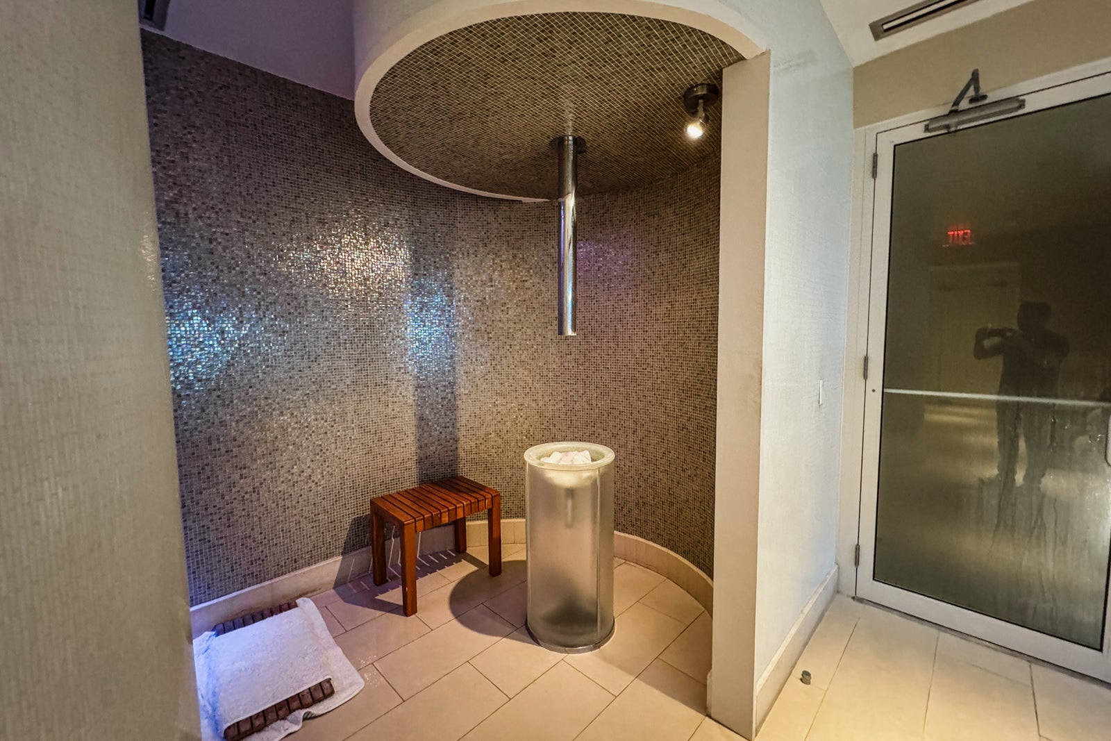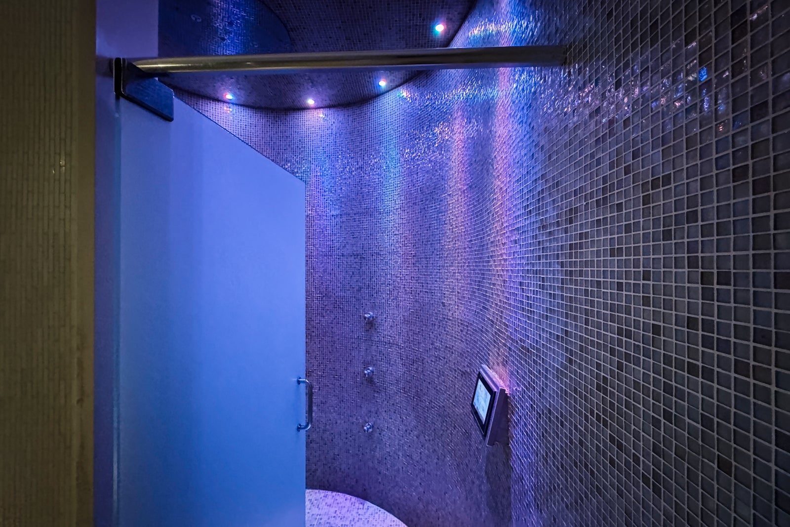 There are men's and women's locker rooms complete with showers, steam rooms, saunas, ice stations, outdoor relaxation areas and whirlpools, as well as experiential showers that incorporate lights, sounds and cascades of water at different temperatures to replicate occurrences like island storms.