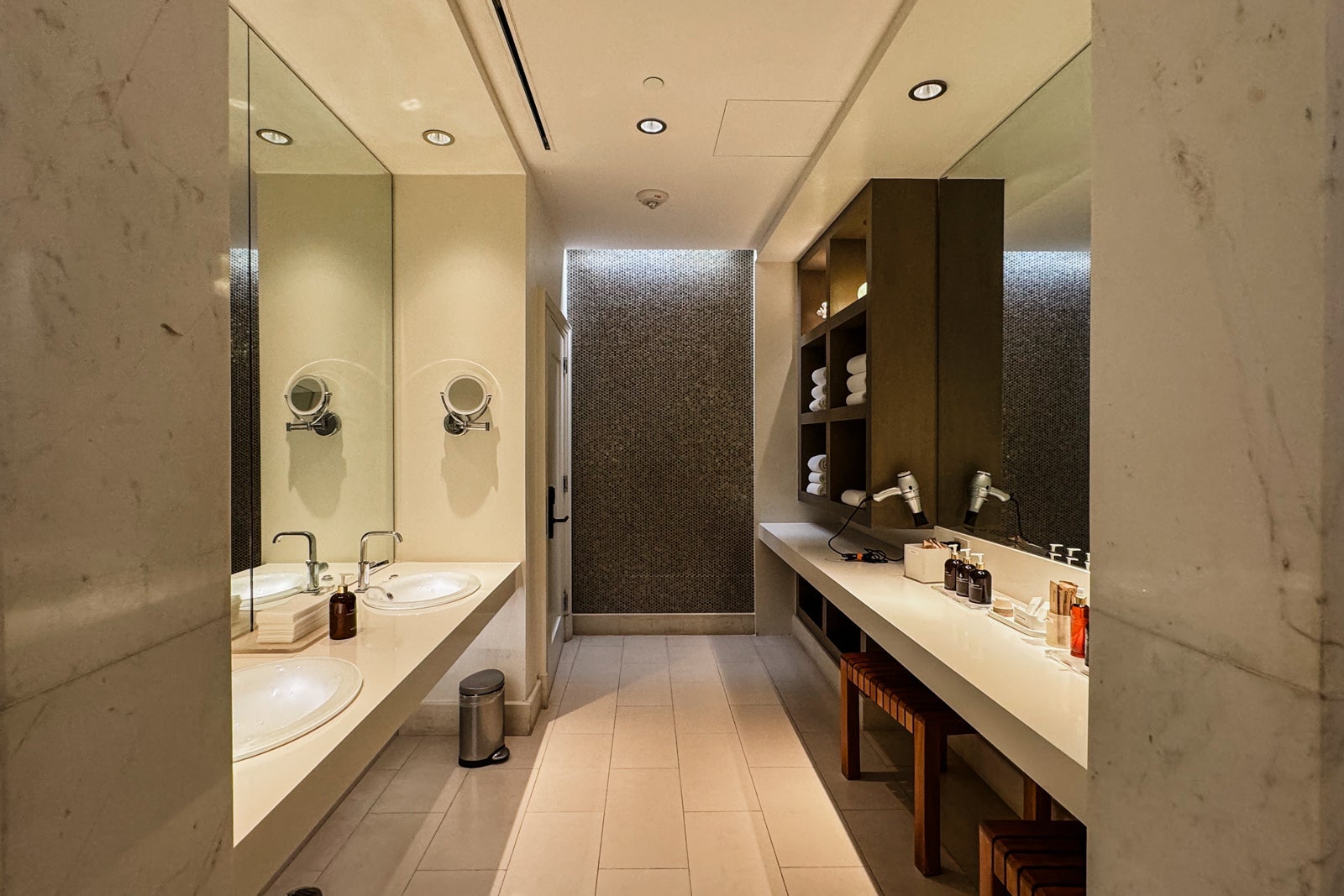 Located on the hotel's lower level, the spa is a huge facility. The experience here starts by checking in at the boutique, where various product lines (think: Biologique Recherche and Kerastase, among many others) incorporated into its treatments are sold.
