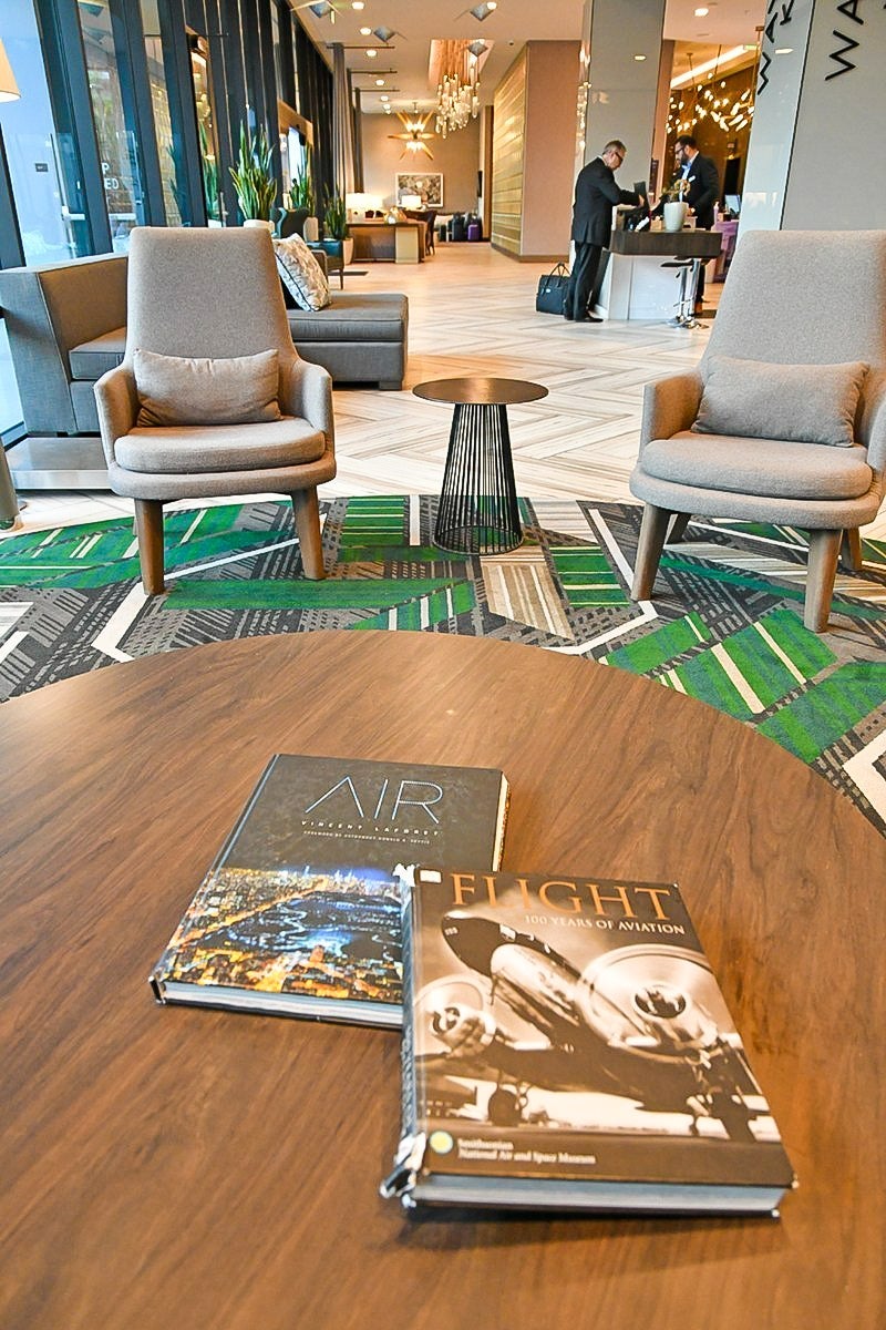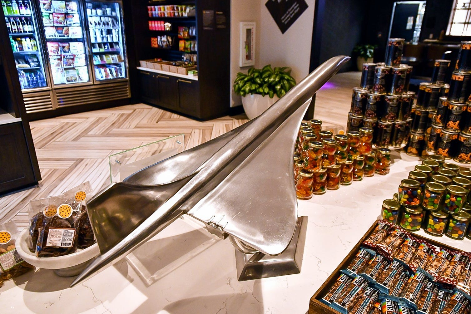 After manually inputting my Honors number — I was hoping, perhaps, for a software glitch that might grant me points despite a third-party booking — I was on my way upstairs to my room. When it came time to check out, a three-hour extension of the deadline from noon to 3pm cost me $59, not exactly cheap. Little AvGeek notes could be found throughout the lobby, from a sleek Concorde model in the snack-for-purchase area to hefty coffee-table books on aviation in a sitting area by the large glass windows.