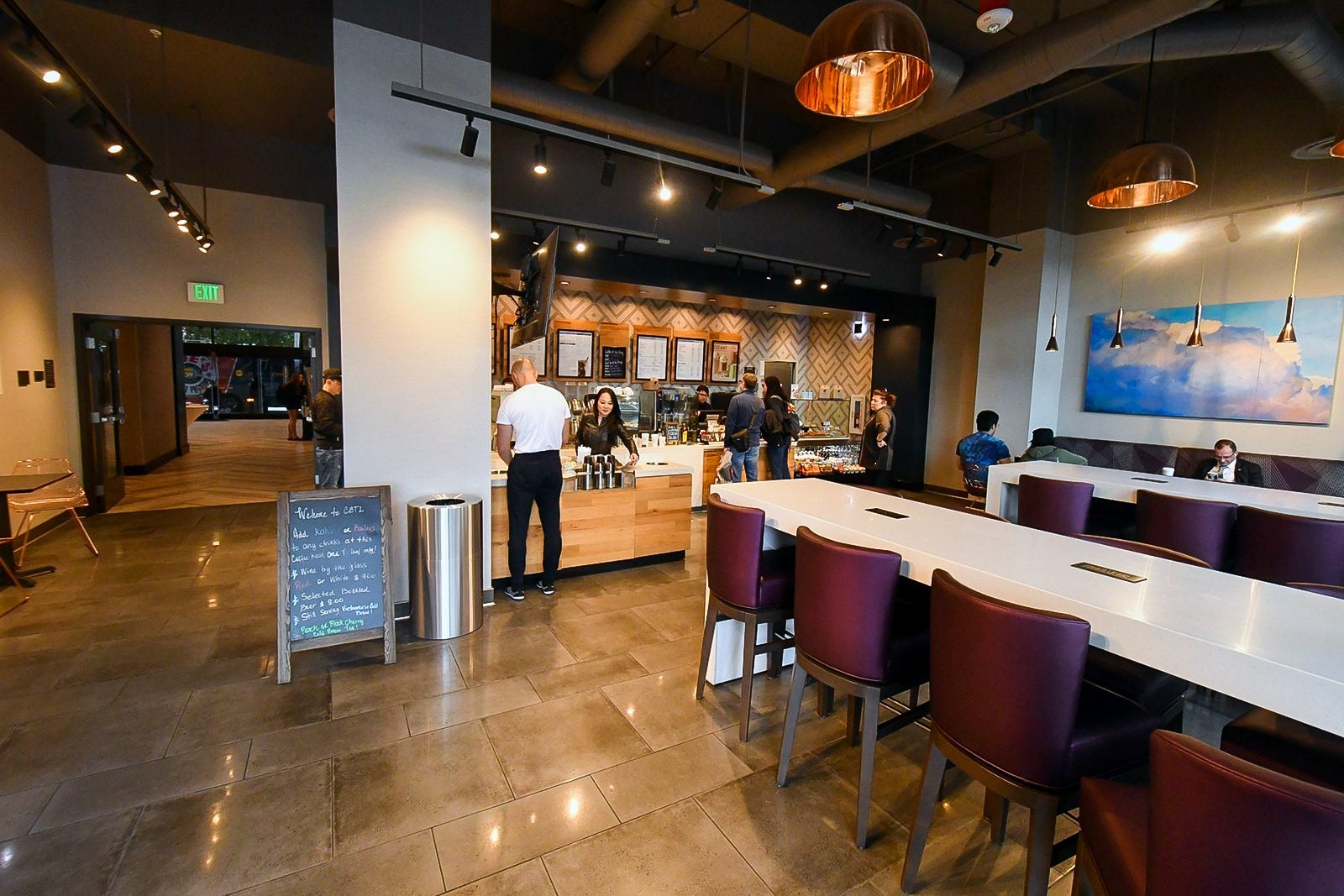 The LAX shuttle dropped me off in front of the hotel, I walked through the sliding doors, and found the front desks for the H on my left and Homewood Suites to my right. The ground level is clearly built to ease the flow of weary, or hurried, passengers.