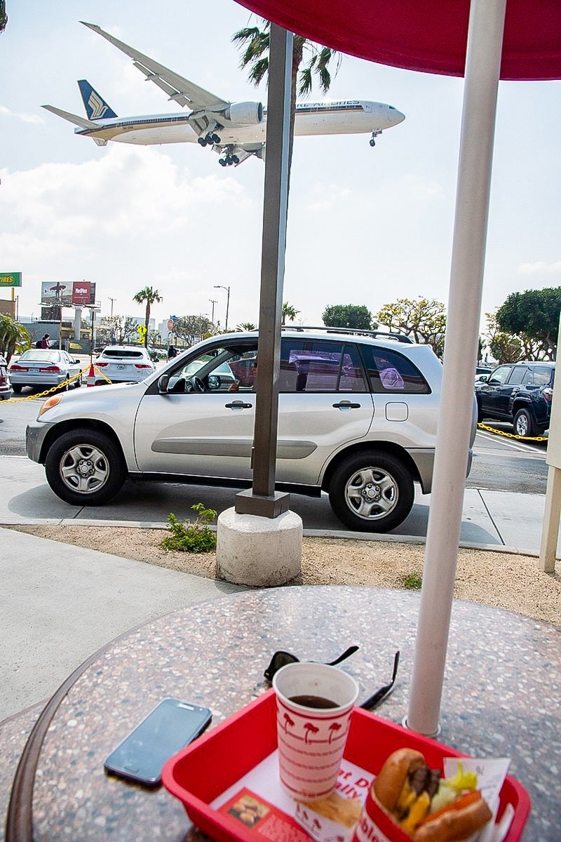 From the hotel, it's a 15-minute walk, tops, to the In-N-Out Burger, a place known to plane fanatics as a prime location for amazing closeup shots of landings. As a place to photograph airplanes, the In-N-Out is world-class. The burger I had with the Singapore Airlines 777 wasn't bad either. Just make sure to go in the late afternoon if you want the best light; I went at midday, and was backlit the whole time.