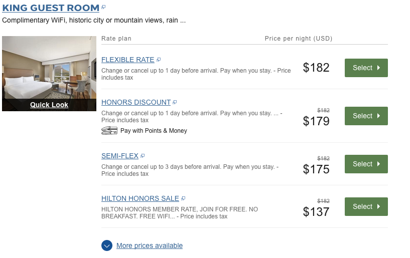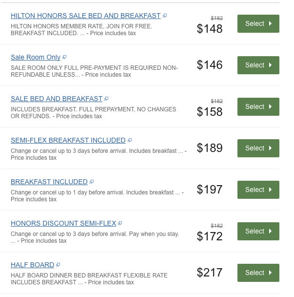 As you can see, there were several other rates available for different packages, which made things a bit confusing. But seeing as the rate I'd found was lower, I decided just to go ahead with that booking.