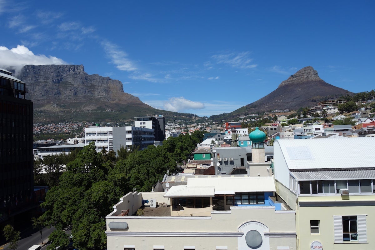 Because it was so late, I showered and went right to bed. But in the morning, I was rewarded with this view of Table Mountain and Lion's Head.