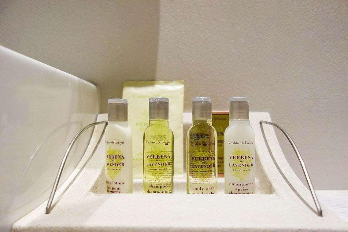 The bath products provided were verbena-and-lavender-scented from Crabtree & Evelyn.