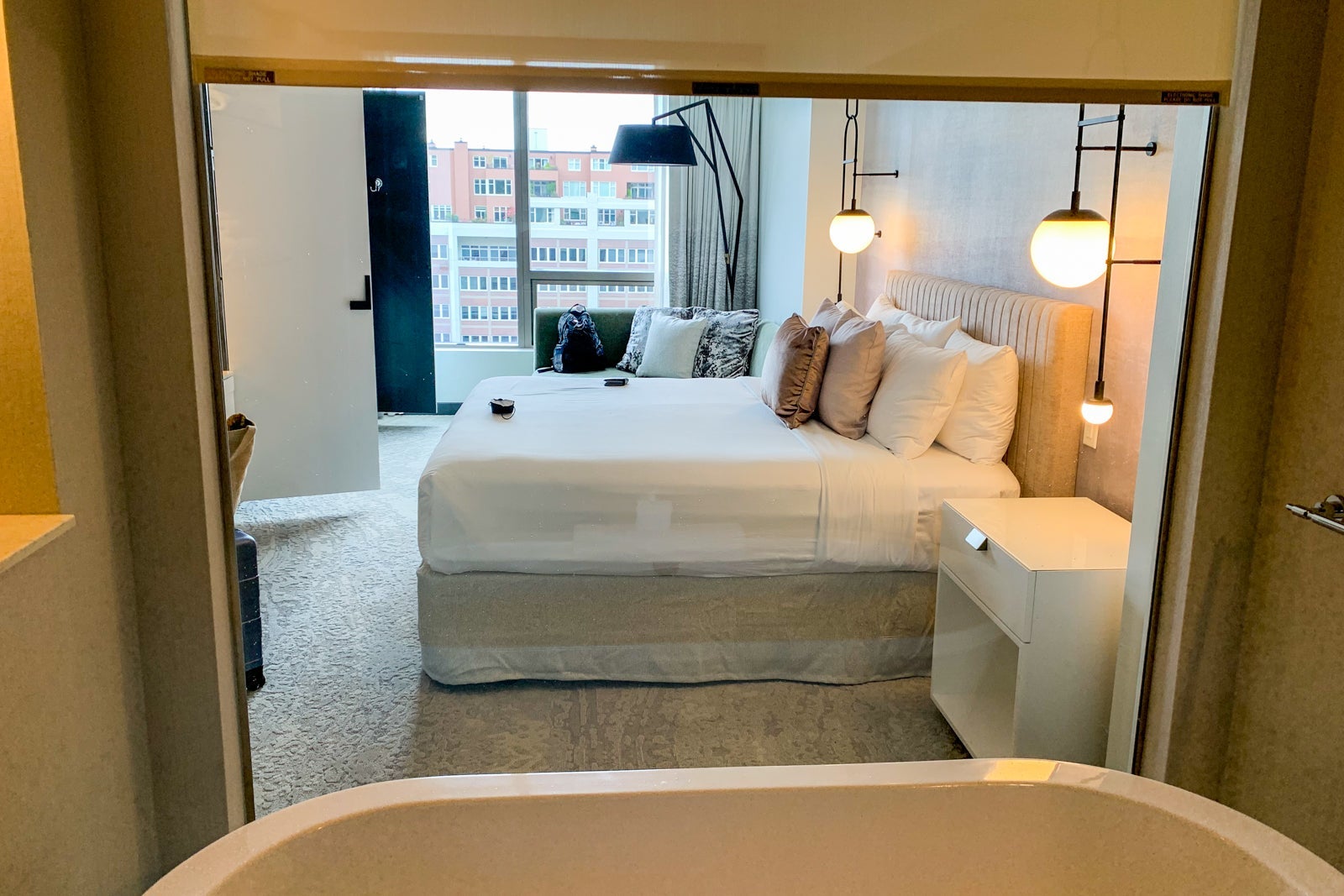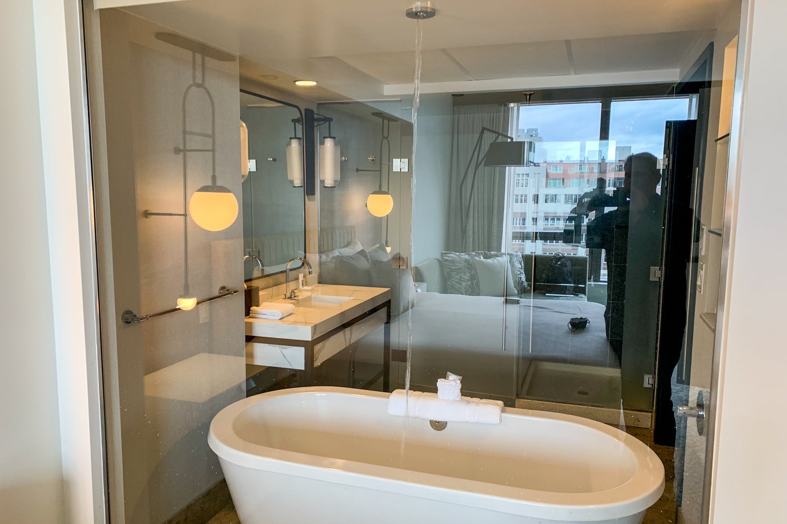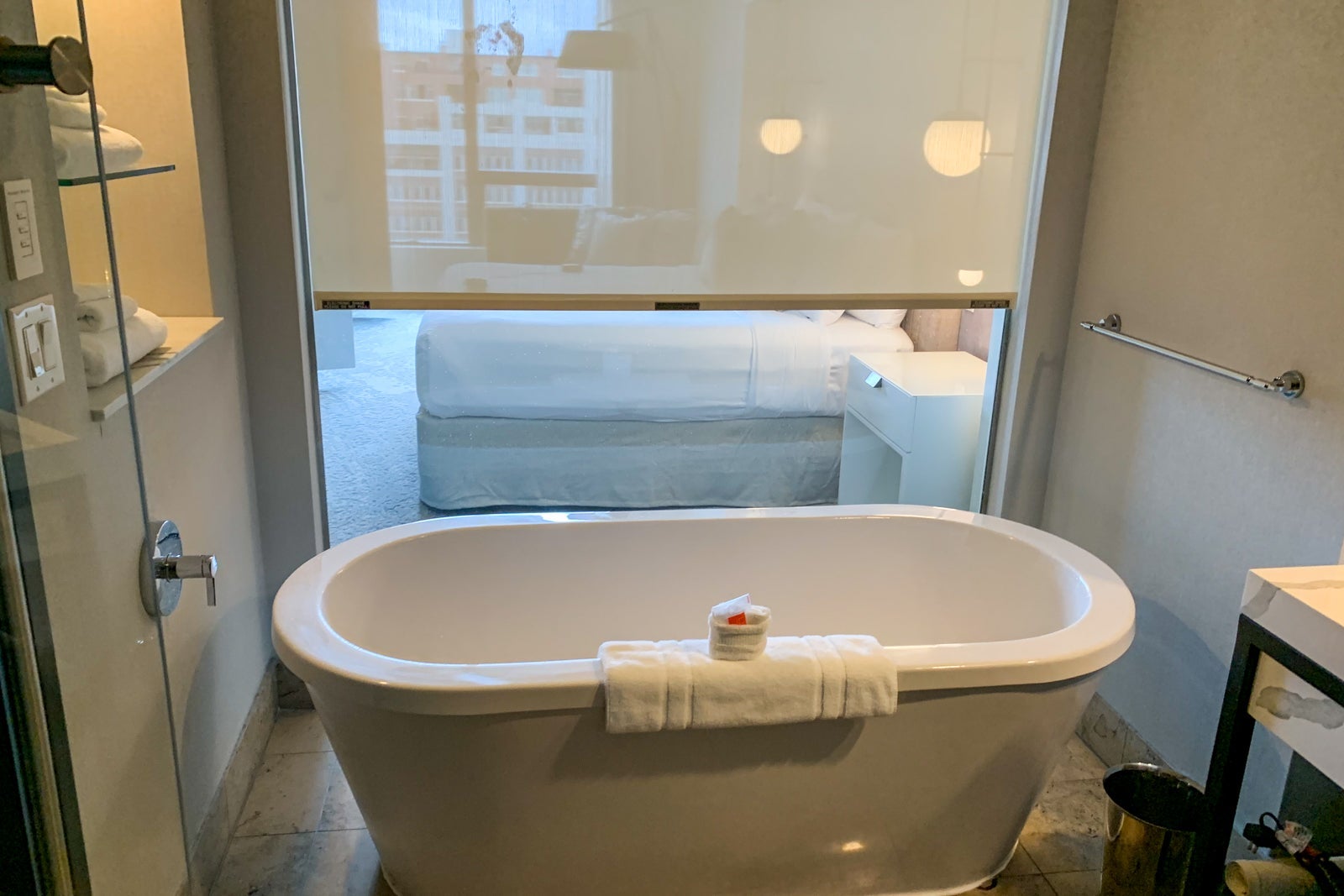 They've embraced the trend of visible bathrooms in hotels, but fortunately there's a privacy shade so you don't have to be putting on a show for any guests (unless you are into that sort of thing -no judgement).