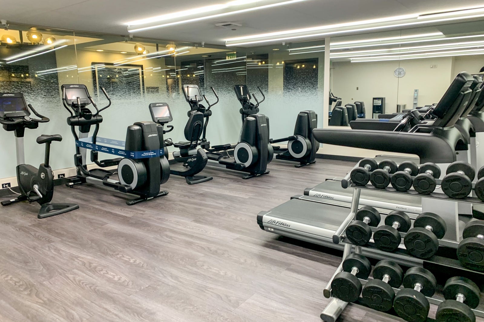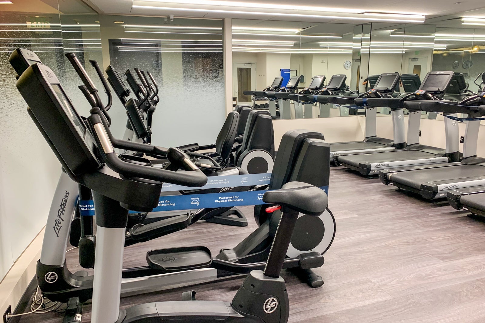 The gym is small, but nice with some machines blocked off for social distancing reasons. I had the gym pretty much to myself.