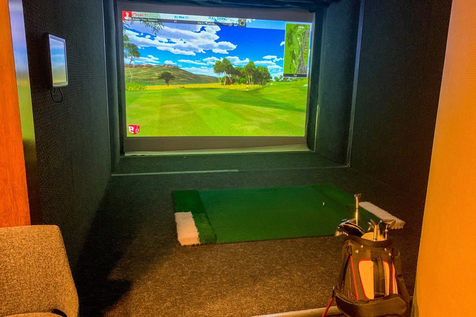 There is also a golf room with two "greens" where you can do a round of golf with the assistance of a theater screen and a computer. It was kind of fun to hack away at a few balls down in the basement even though I'm no golfer.