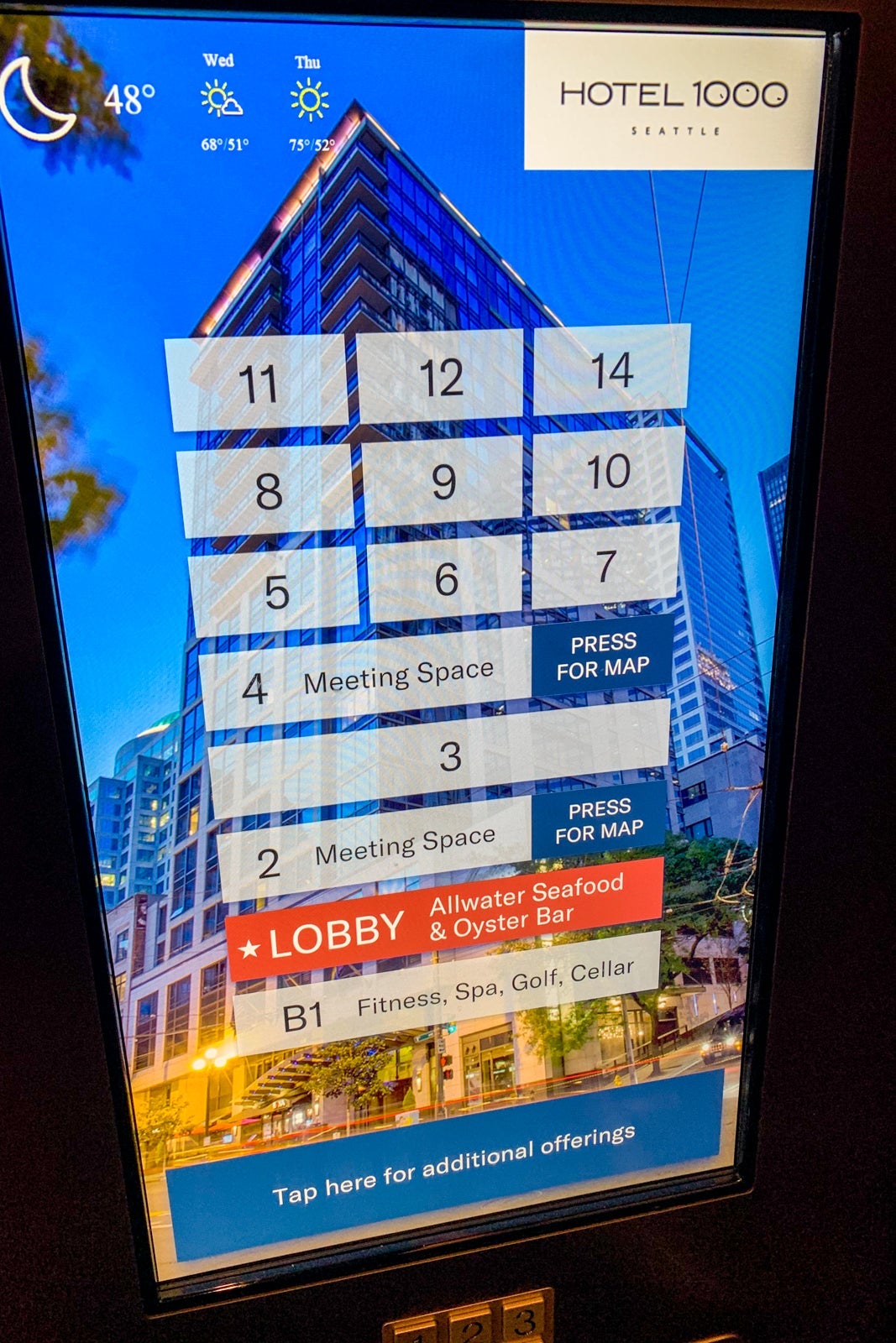 The Hotel 1000 is wheelchair friendly with a flat entry and wide elevators. There are several rooms that are Americans with Disabilities Act-compliant, including rooms with double beds and queen rooms. There is Braille signage on the room doors, but the elevator was not Braille-friendly.