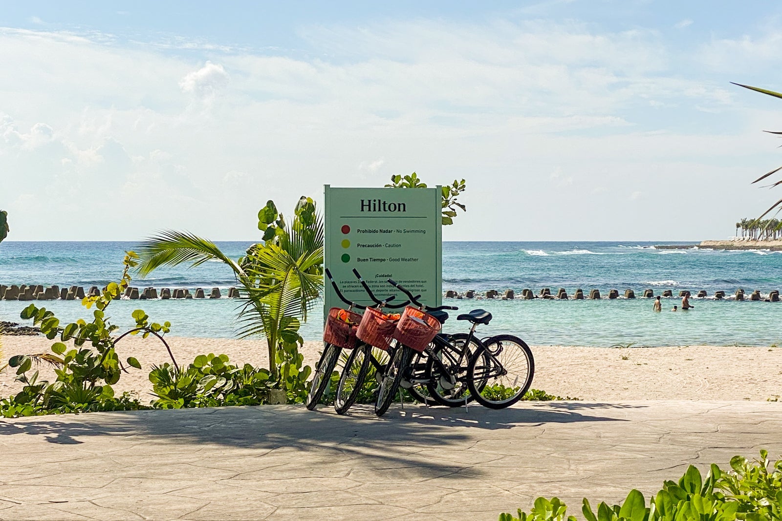 The Hilton Tulum has accessible rooms with wide doorways to accommodate wheelchairs, plus roll-in showers. Most of the hotel's public spaces — including the pool areas and restaurants — are accessible via ramps, elevators and paved walkways.