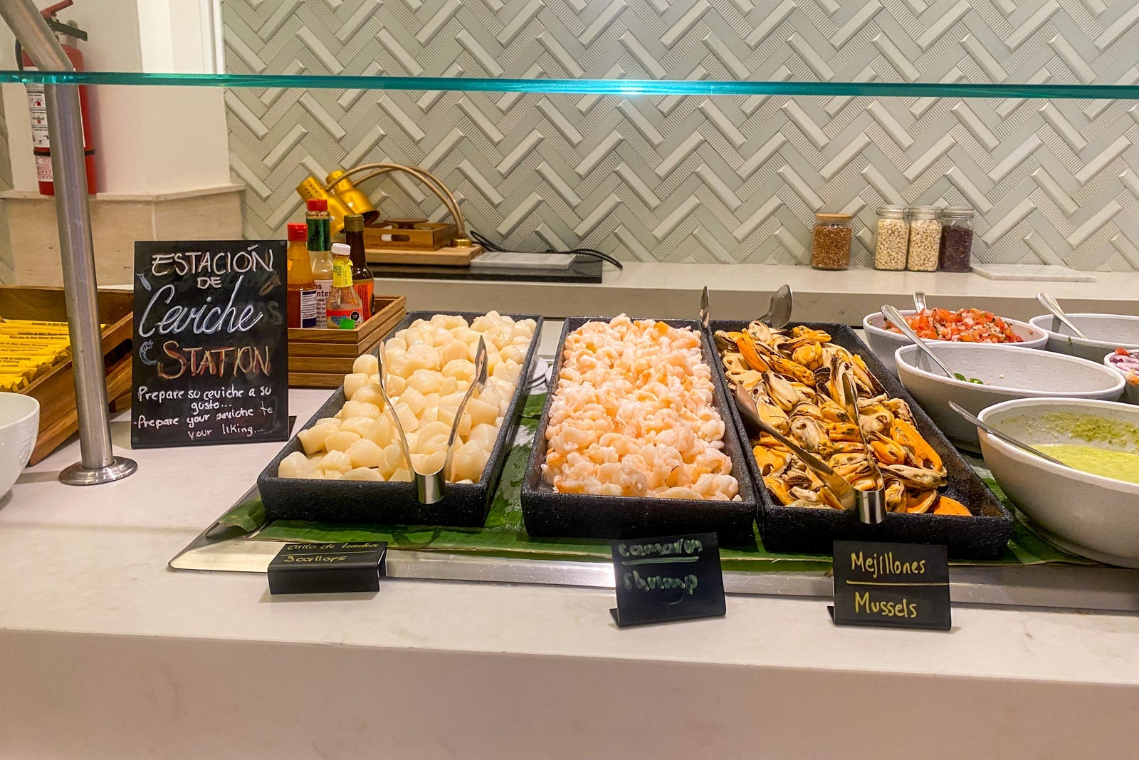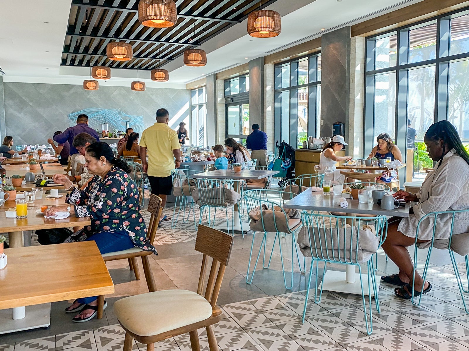An expansive breakfast brunch is served from 7 a.m. until 11 a.m. in the ocean-facing Vela Sur, with floor-to-ceiling windows, tiled floors and nautical-themed decor. There's something for every palate with American, continental and classic Mexican fare, plus egg and waffle stations, ceviche, tacos, copious cereals, breads and cakes, as well as more health-conscious local produce and toppings (chia, sunflower seeds, nuts, dried fruits), juices and smoothies.