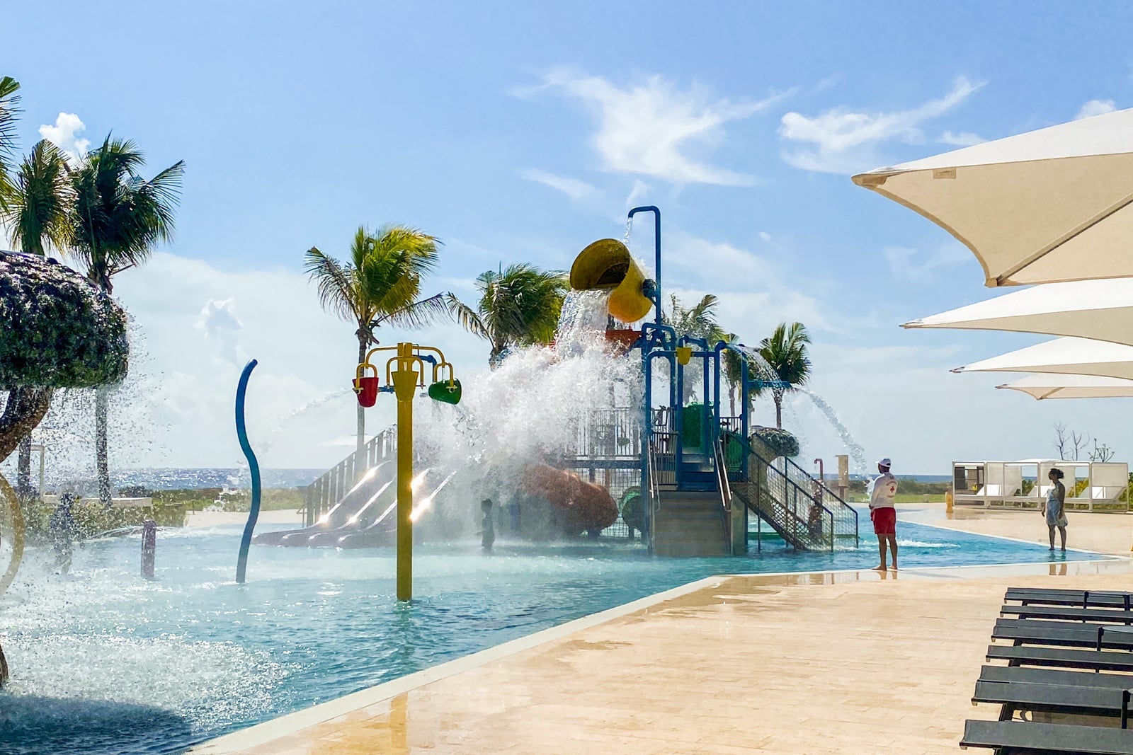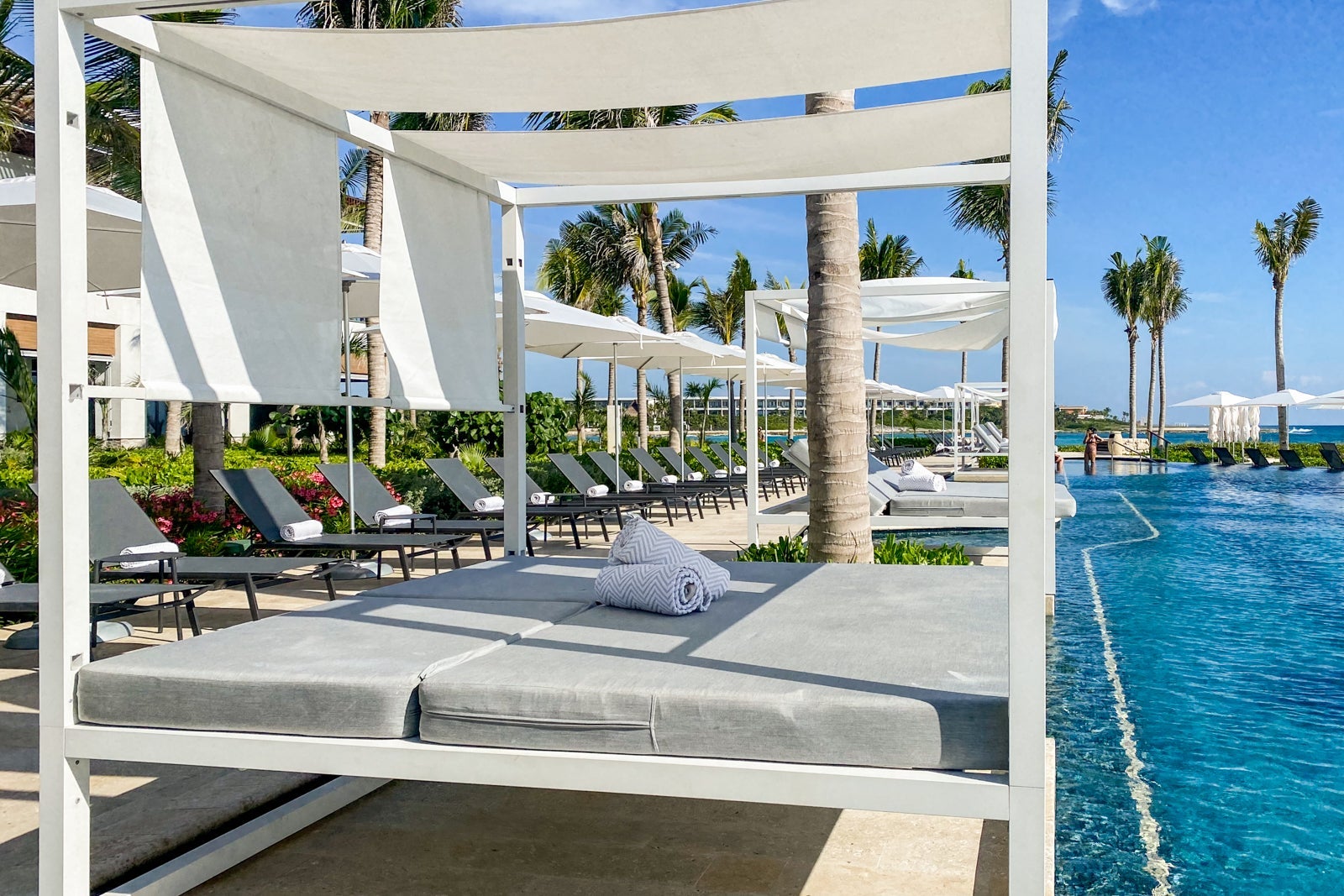 Between the Family Zone and more adult-oriented confines of the resort, there are eight oceanfront pools lined with sun loungers, cabanas (extra fees apply — between 1,350 pesos/$64 and 2,350 pesos/$112, including premium drink packages) and parasols.