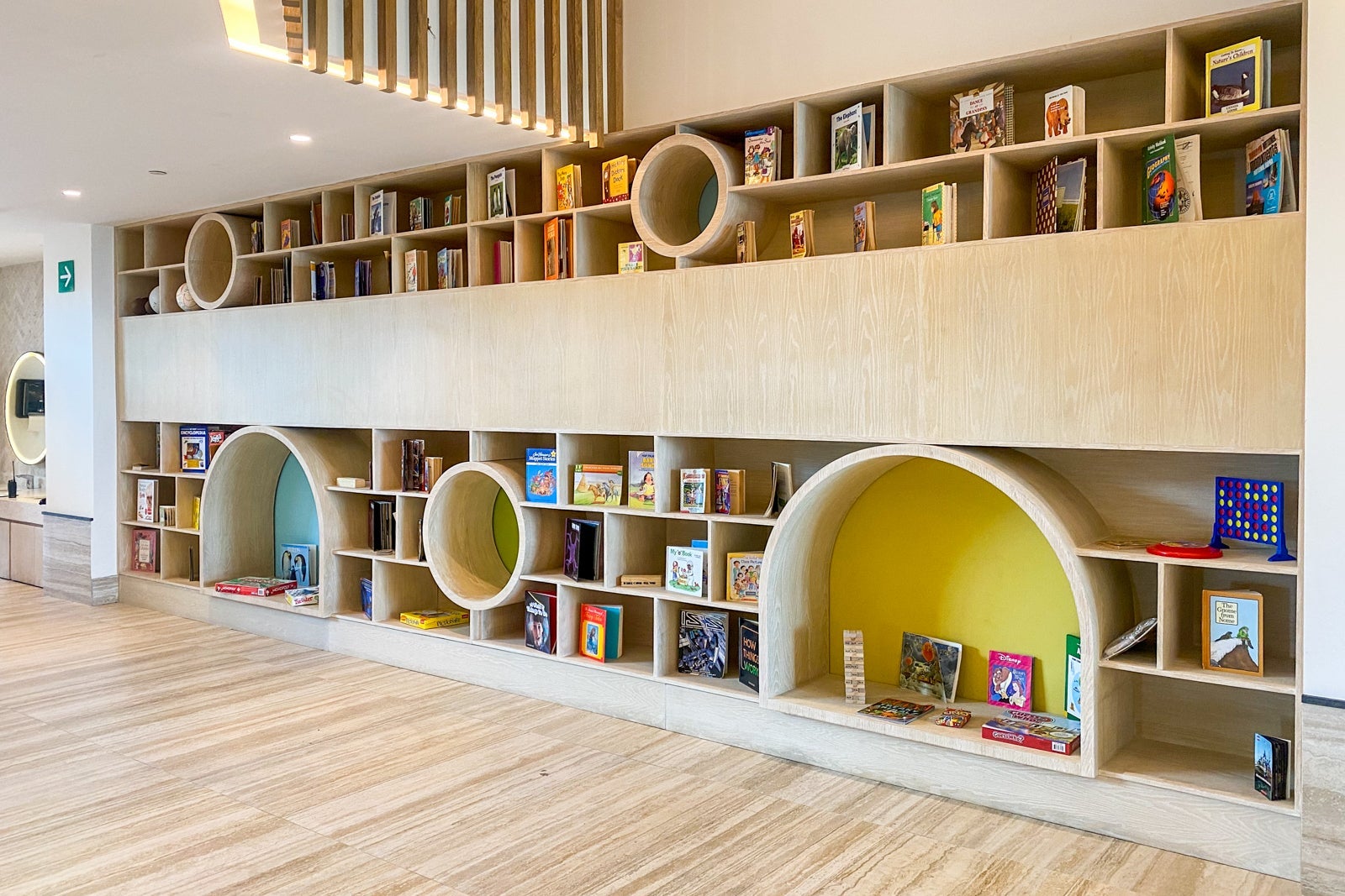 The lobby's eco-chic theme runs through all the public spaces with a soothing beige and cream color palette, artworks sourced from local artists, and furnishings and statement pieces crafted from organic fibers and textiles.