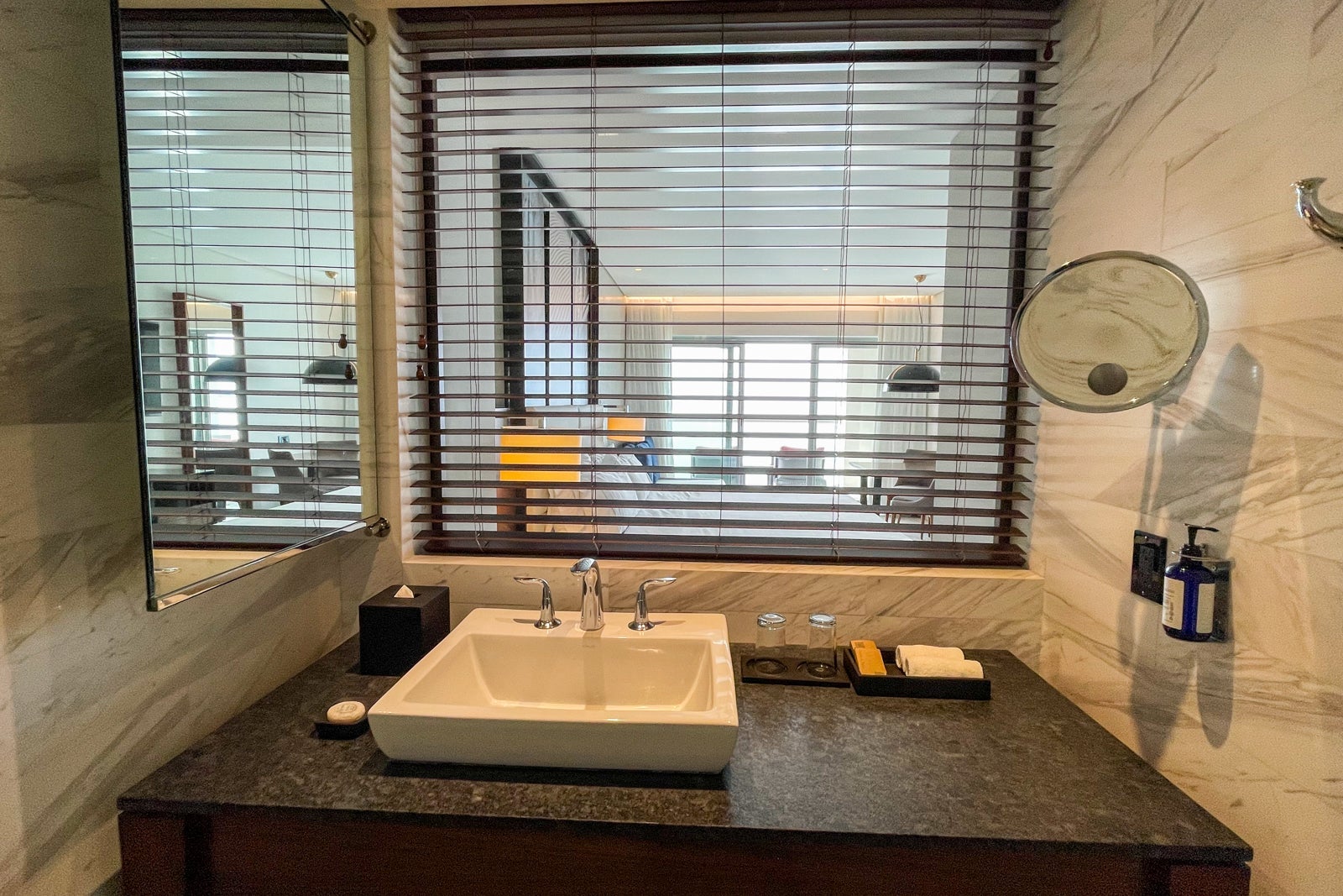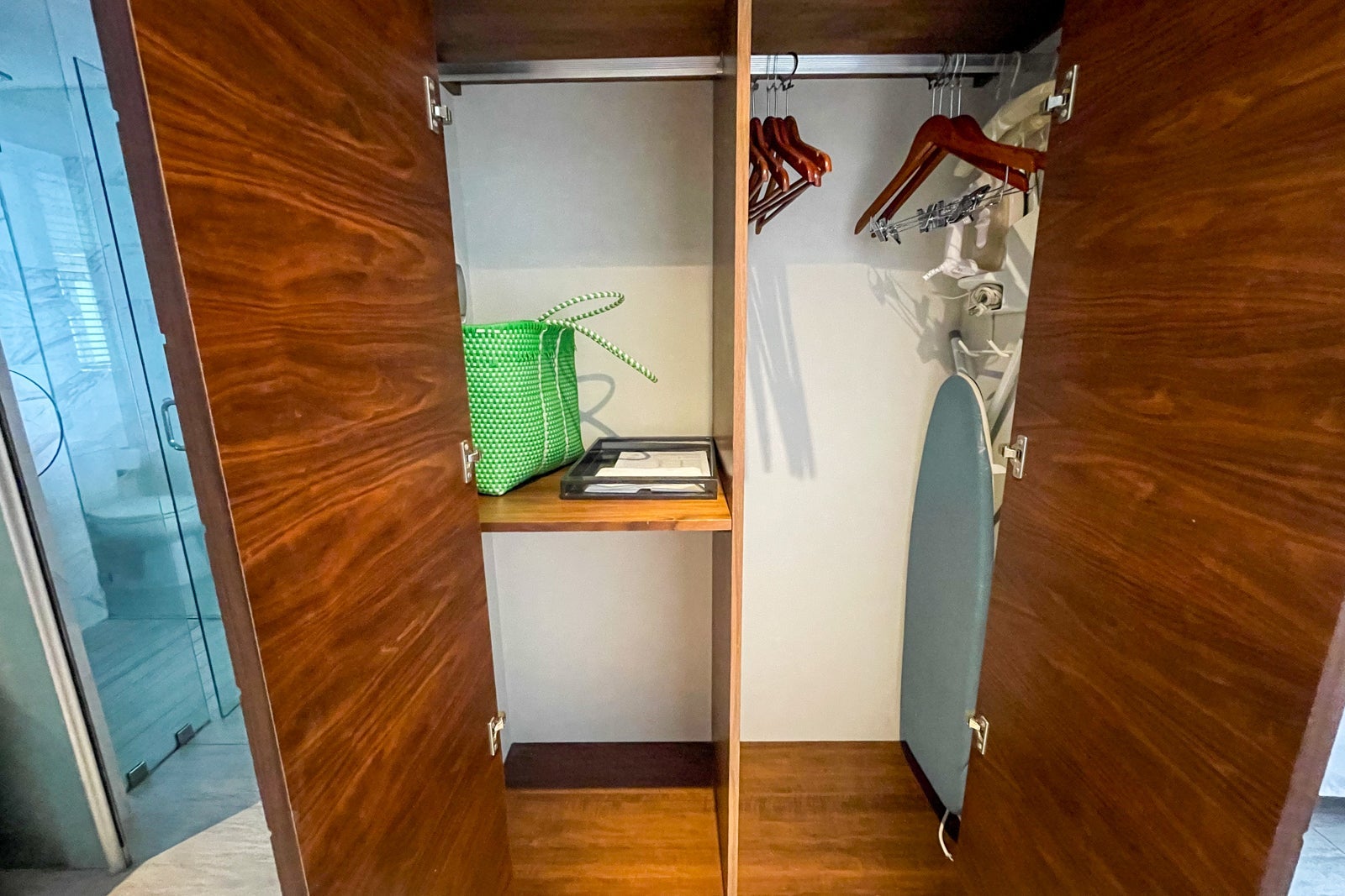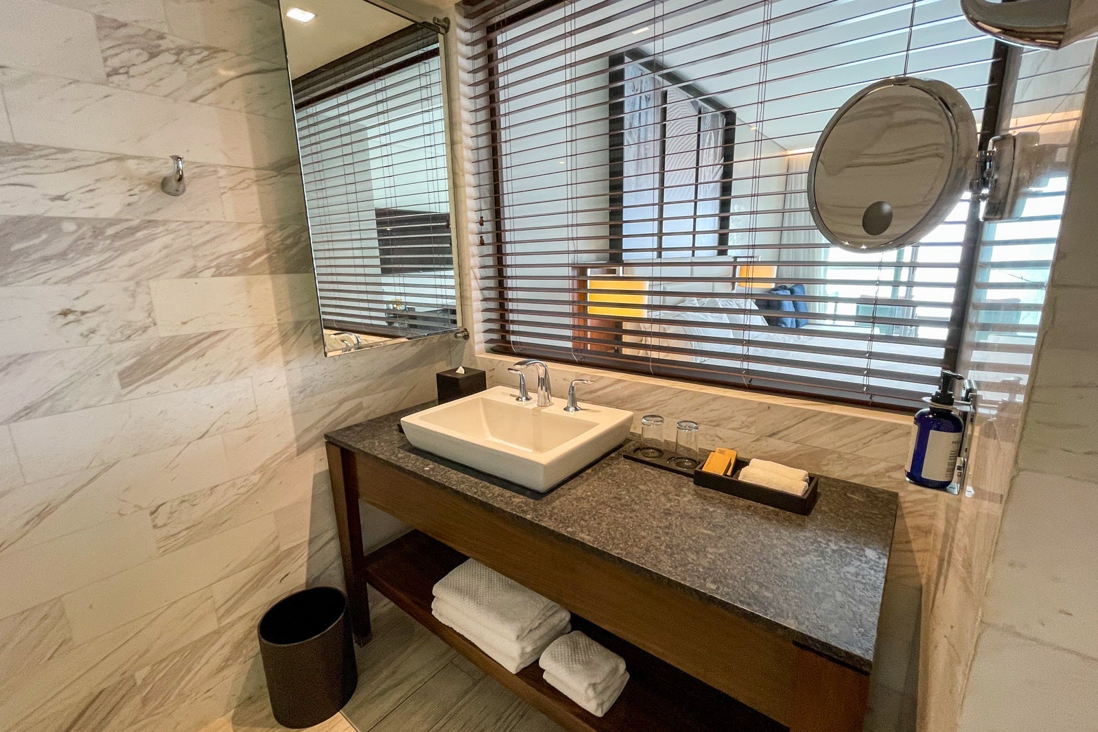 Moving into the bathroom, I appreciated that the shower had a small gap in the glass door to reach in and start the shower without getting the floor outside wet. Unfortunately, the water temperature was inconsistent during my stay, with hot water half the time and tepid water the other half.