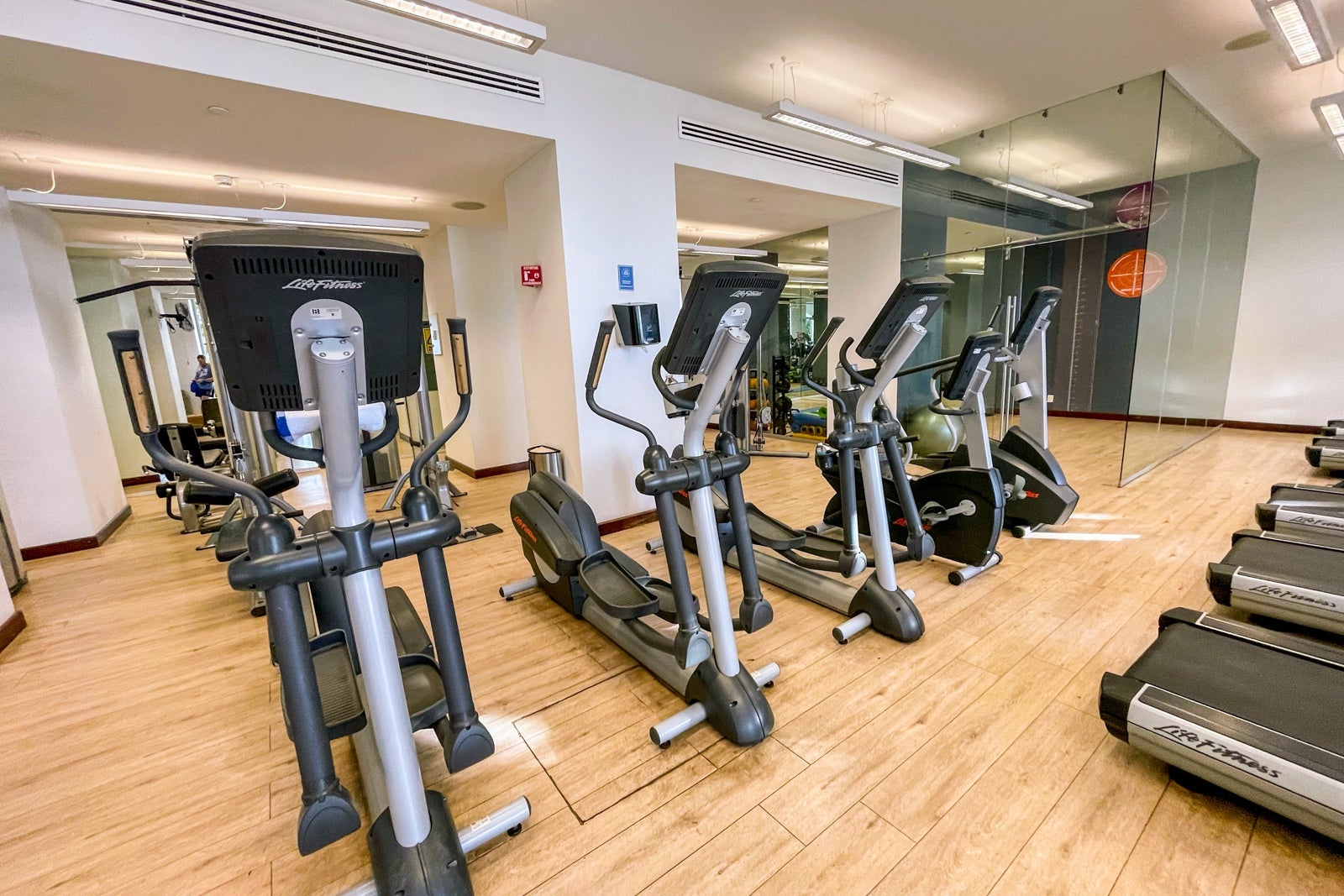 You can get a workout in at the medium-sized, somewhat outdated gym with all the essentials you'd expect from a standard hotel.
