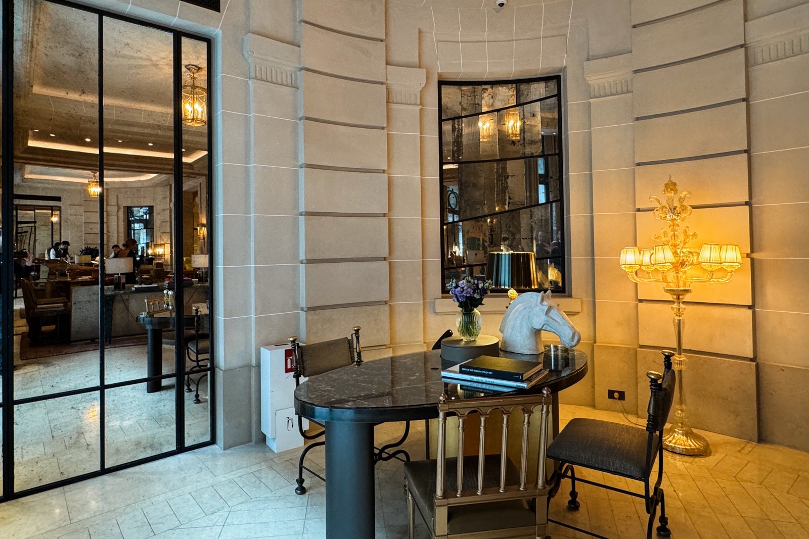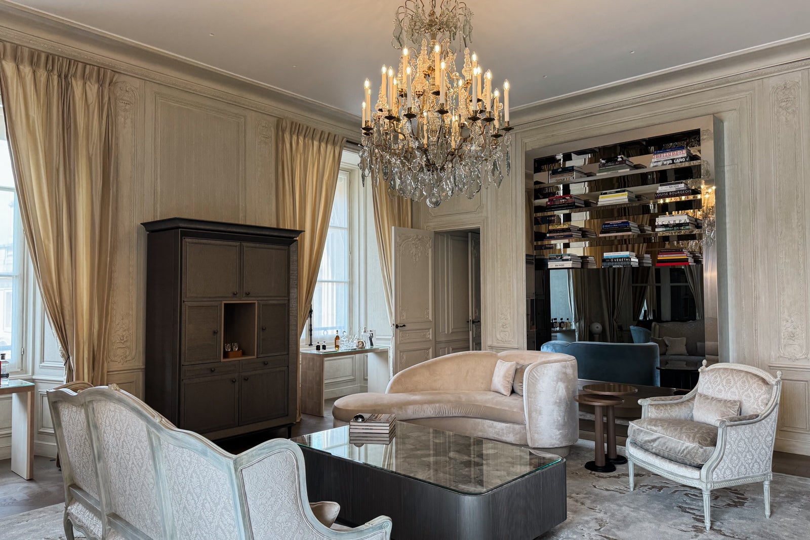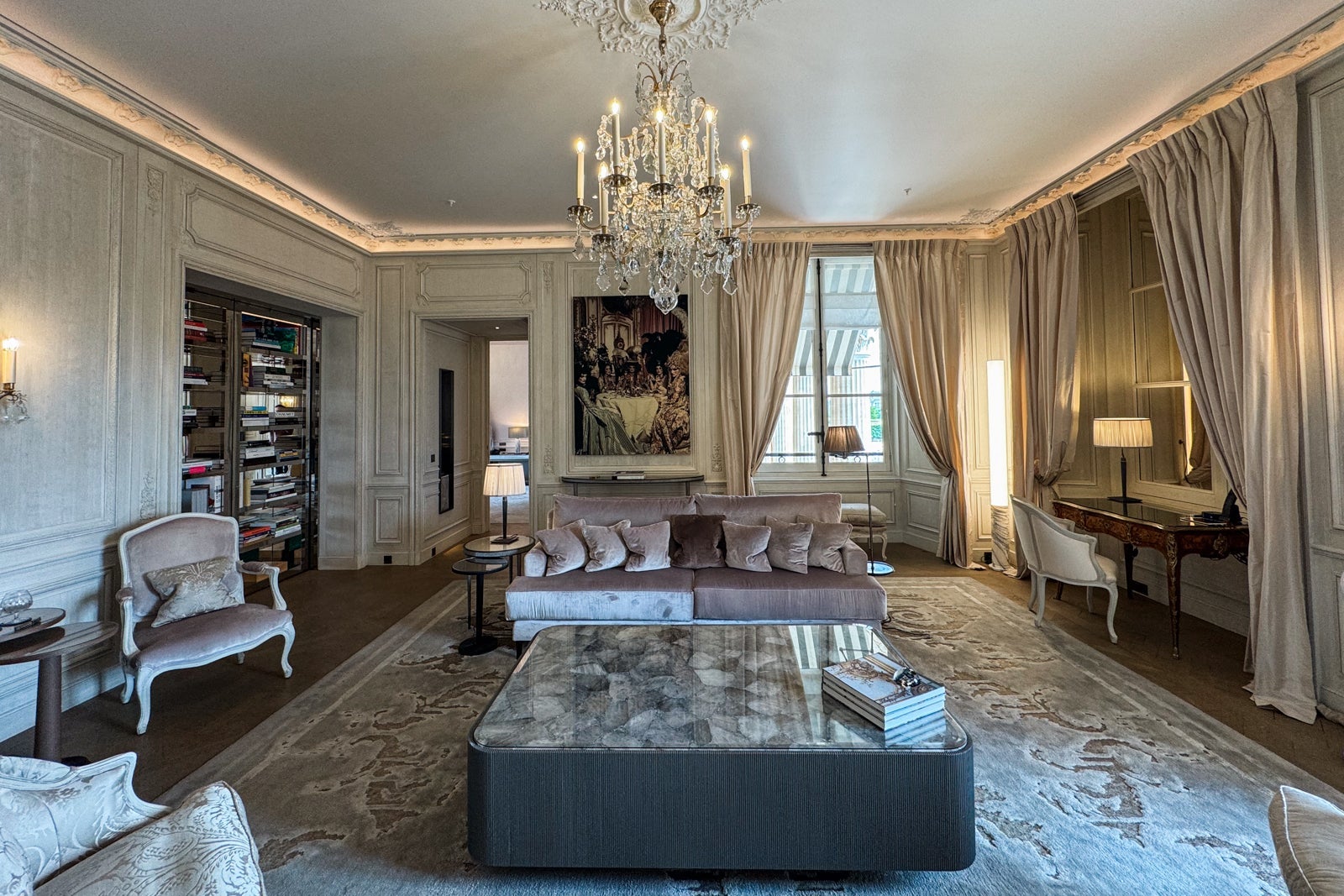 There, you can peruse various art books as you watch visiting magnates and Parisian glitterati drift beneath the ornate gilt and crystal chandeliers from an appointment at Sense, A Rosewood Spa to afternoon tea at Butterfly Patisserie or cocktails at Bar Les Ambassadeurs.