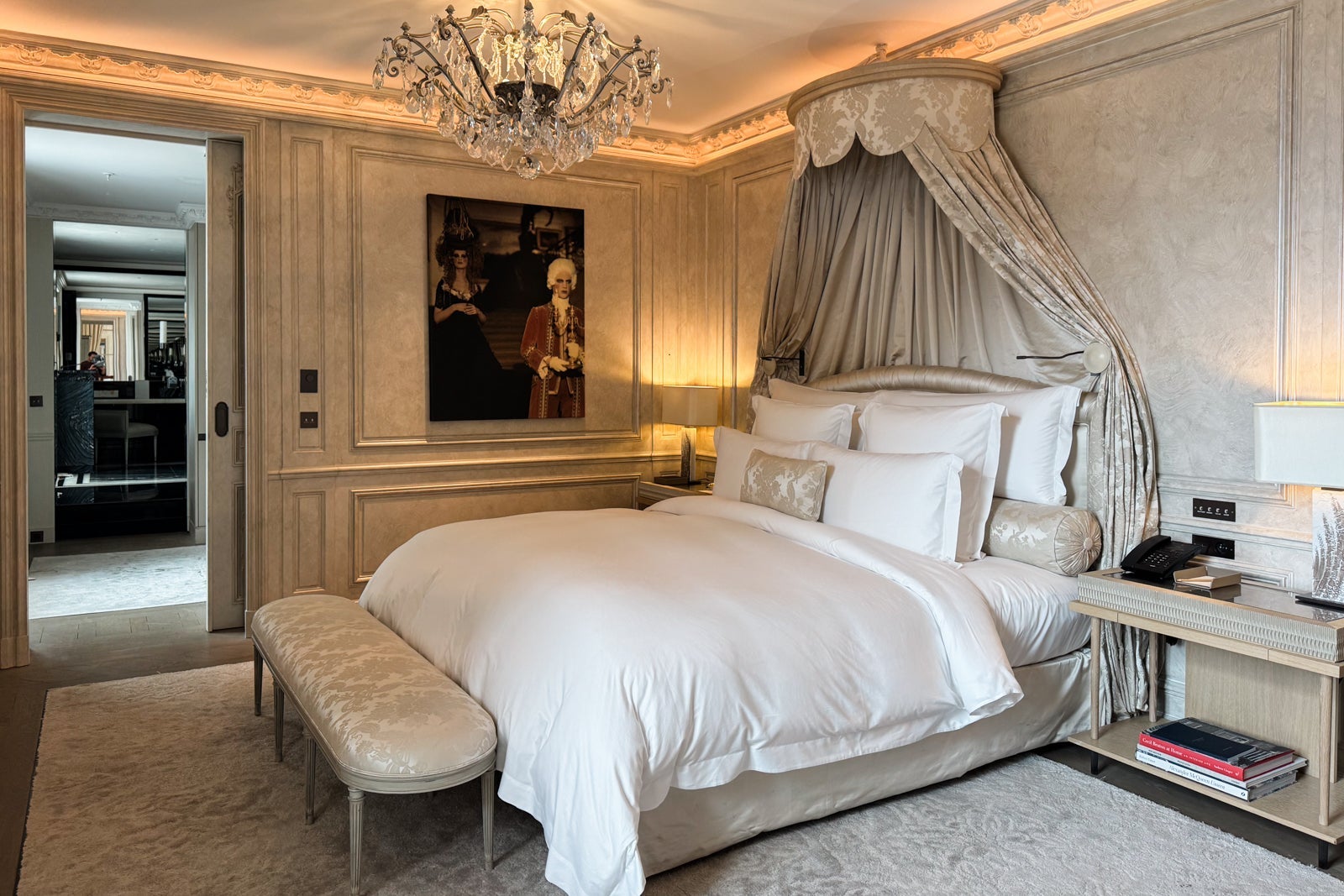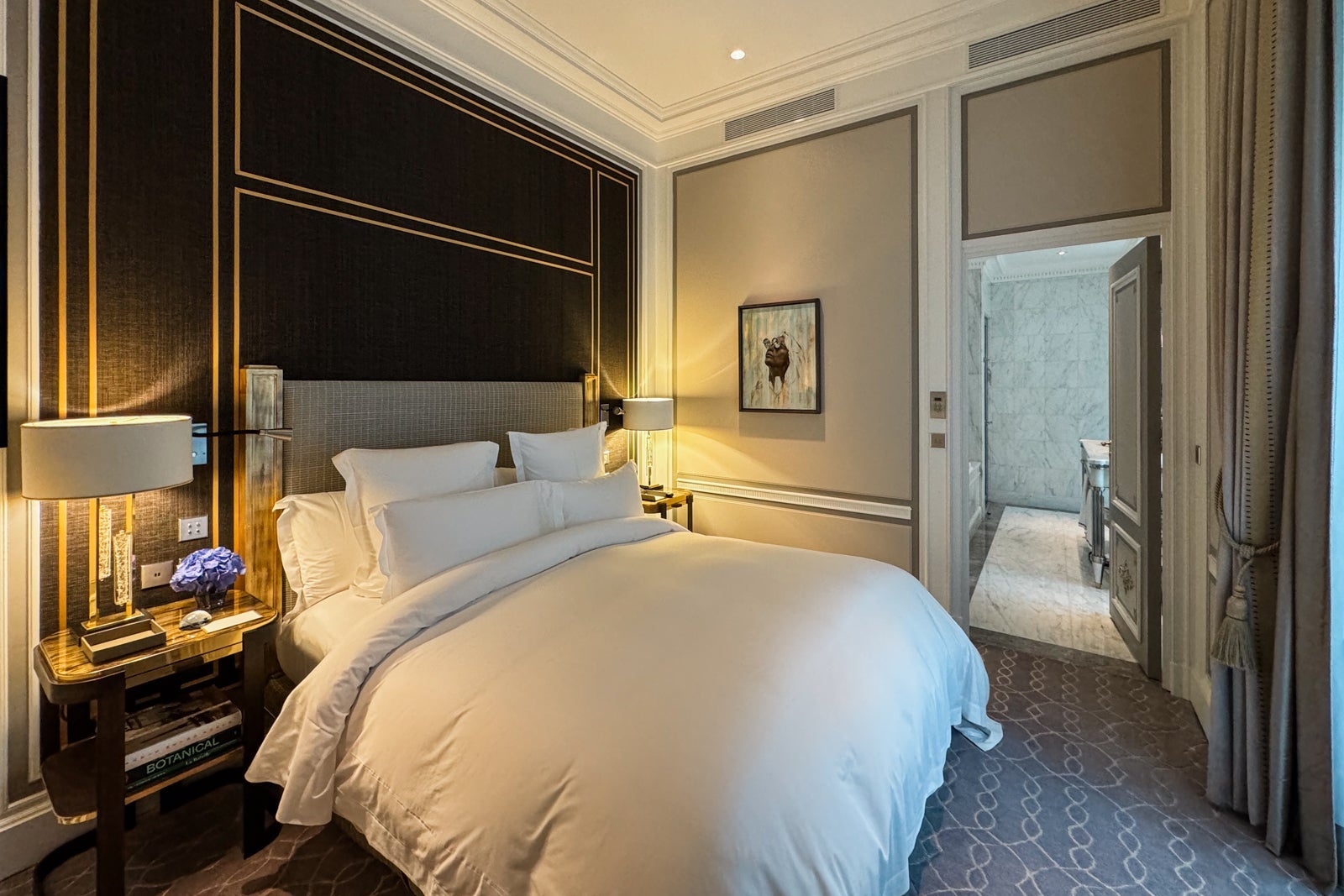 Stepping into the adjacent bedroom, I noticed the pillowcases had been monogrammed with my initials and briefly considered canceling my evening plans so I could luxuriate in the white-sheeted king-size bed while flipping through some of the art books stowed on the nightstands.