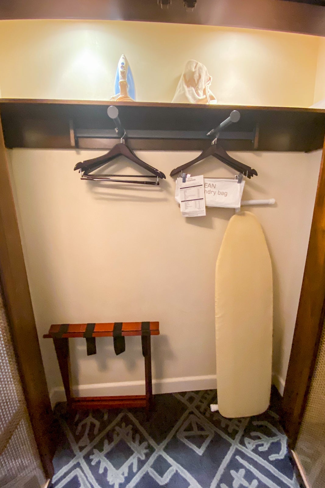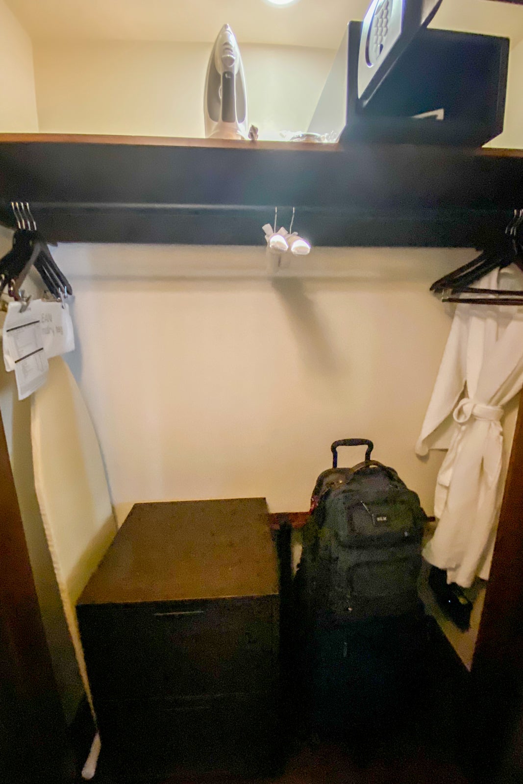 I was happy to see a full iron and ironing board in the closet, because sometimes the best you can get in a Hyatt property is a steamer. The closet was a good size, with four regular and four pants hangers. However, despite a promised robe, it wasn't in the closet. There were also no extra pillows or an extra blanket – but there was a 1200W/875W Eco Selectaire Tourmaline Ceramic blow dryer. I have no use for this thanks to my short hair, but I know that this is a hair dryer that will get the job done. There was also a luggage rack in the closet, but I didn't use it because this was a quick overnight trip.