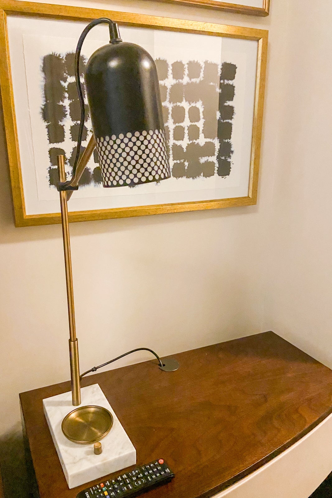 The king bed was quite comfortable and the four pillows were more than enough to promote a good night's sleep. I did like the holder at the base of the bedside lamp, which was perfect for my watch and rings. There was no alarm clock in my room but I wasn't mad about it. Nine times out of 10, they're either set at the wrong time or the alarm doesn't work.