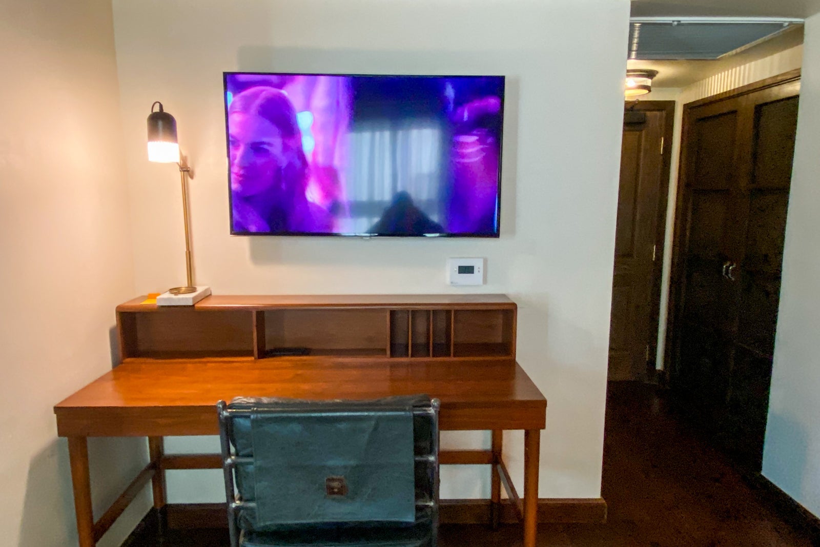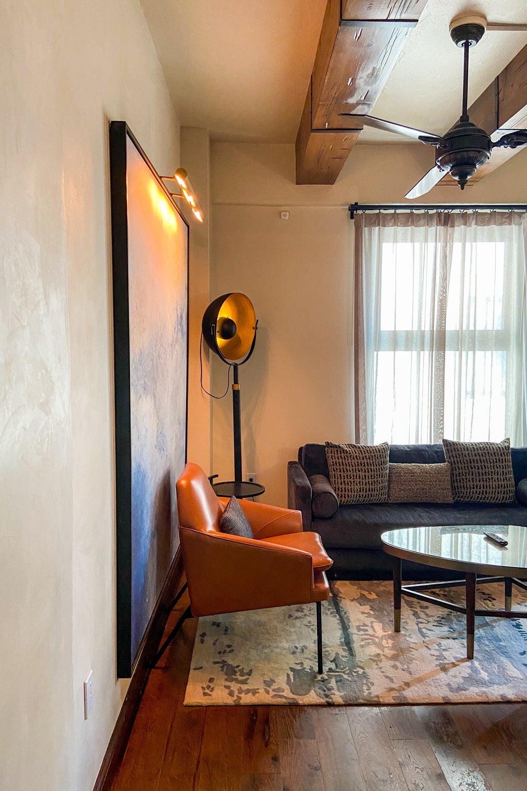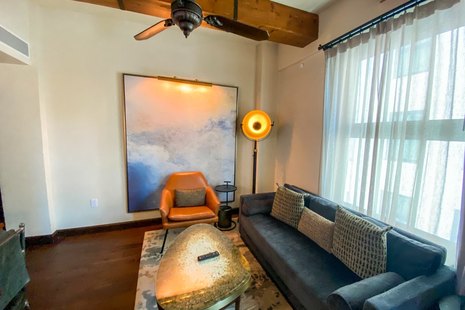 I met loyal TPG reader Bryant, a Hyatt Globalist who was in L.A. on a mileage run to keep his American Airlines AAdvantage Platinum Pro status, in the hotel lobby after he recognized me by my glasses. He had been upgraded to a junior suite and allowed me to take a peek. It was a corner room that had stylish furniture with an easy, breezy California vibe. The main sitting area was spacious, with a comfortable seat and couch. The television was much bigger than mine.