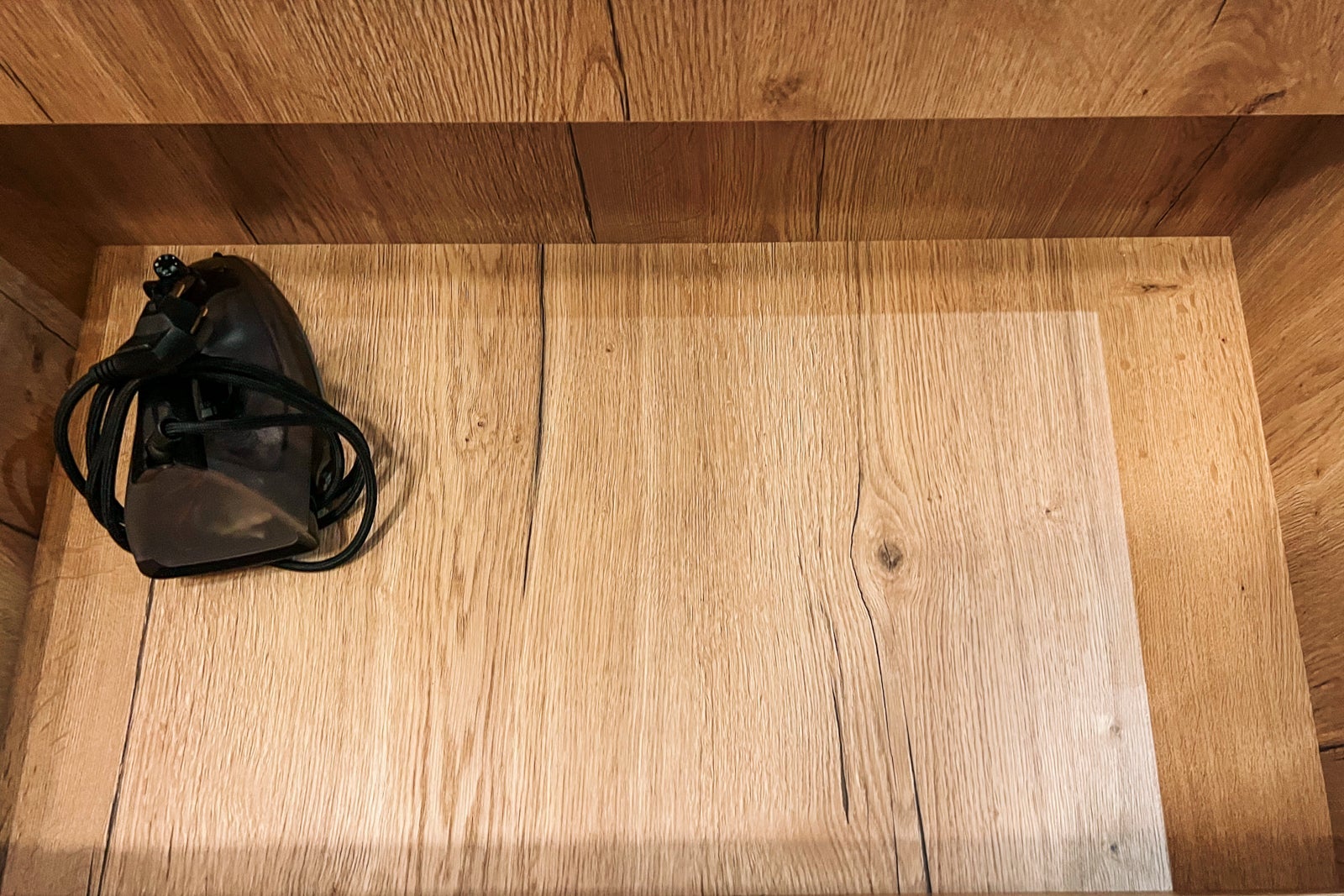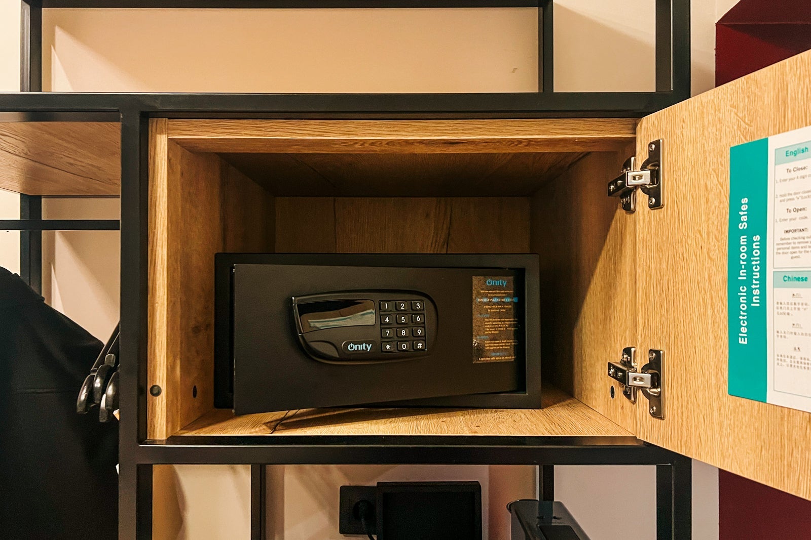 At first, I had a hard time locating the room's safe, which is something I tend to utilize during my travels to keep all my important documents and belongings. After toying around with the open-concept closet, I pushed on what I thought was just a wooden accent piece; lo and behold, there was the safe.