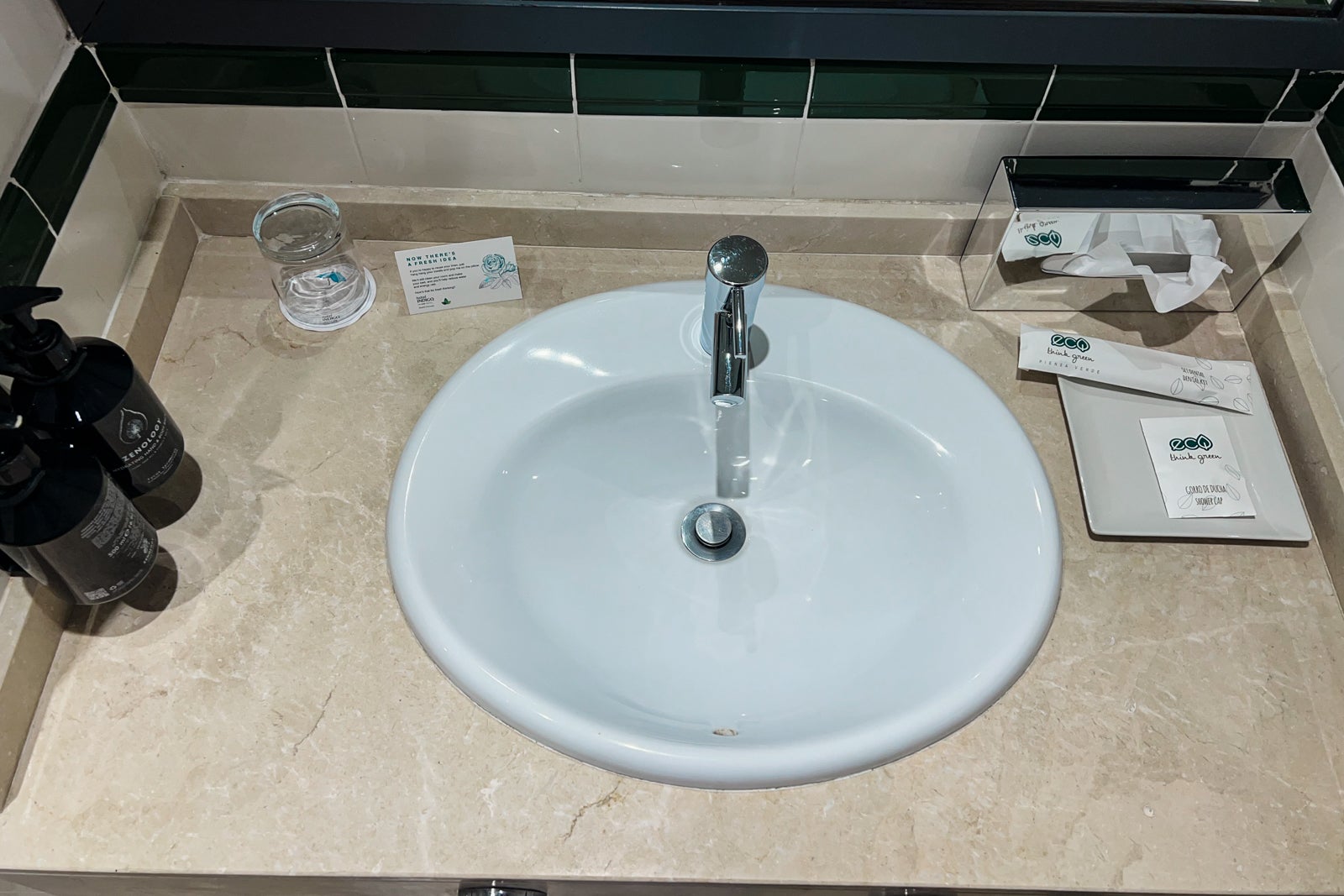 The bathroom was sizable compared to my small New York City apartment bathroom. The shower, which had full-size bottles of citrus-scented Zenology products, was a highlight, thanks to the oh-so-sweet sensation of heavily pressurized water.