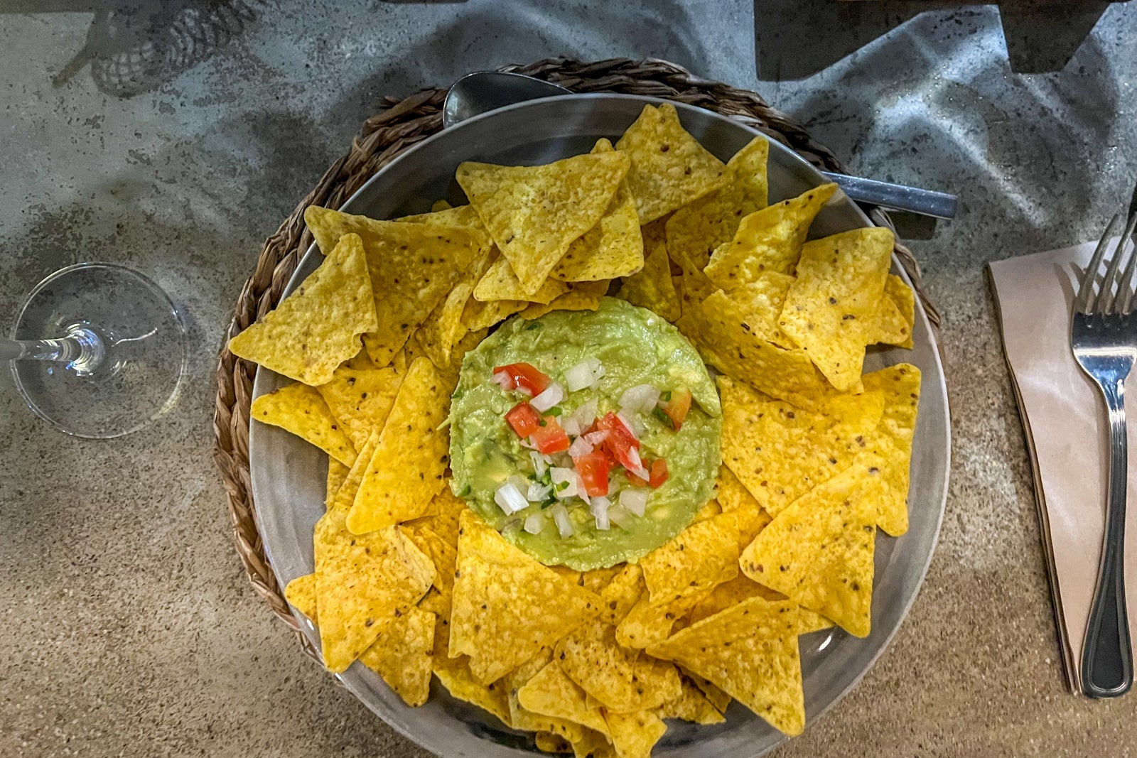 The jet lag from my seven-hour flight disrupted my hunger cues a bit. However, at 7:30 p.m., I still opted for a light snack (or merienda, as the Spanish say) and sat at the dimly lit bar. I ordered chips and guacamole ($10) and a glass of the popular Spanish drink tinto de verano ($8), which is essentially red wine mixed with lemon soda and topped with a lemon.