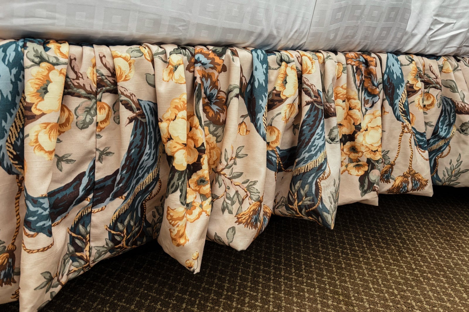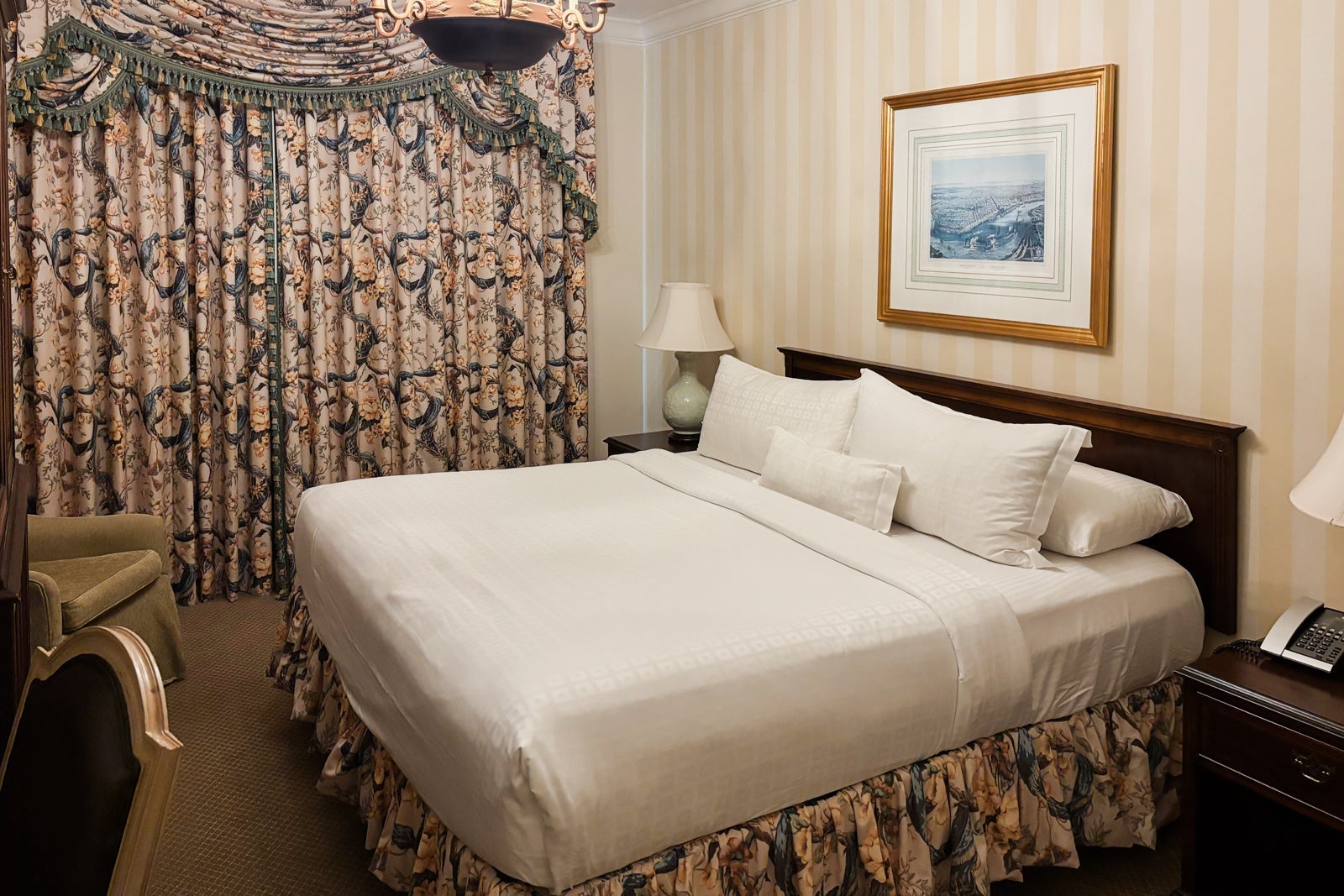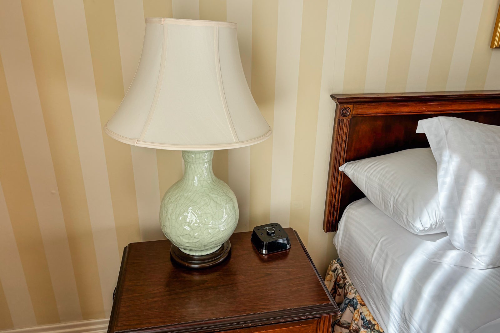 The room had a classic, cozy vibe and tasteful details paired with modern amenities. The striped wallpaper's golden hue complemented the matching floral curtains and bed skirt. Another touch I appreciated was that the TV could be put away within a credenza when we weren't channel surfing.