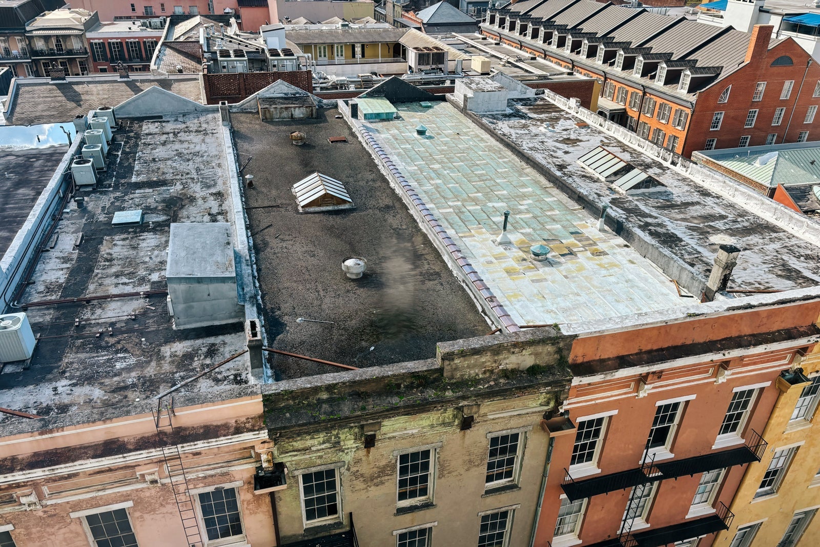 We ended up on the eighth level of the Bienville Tower (roughly the middle of the property's 17 floors). Our room faced the front of the hotel and had a view of Royal Street. If we peered down, we could catch the tops of buildings across the street as well as some more classic French Quarter architecture. Our window wasn't perfectly clean, but it didn't keep us from taking in the views.