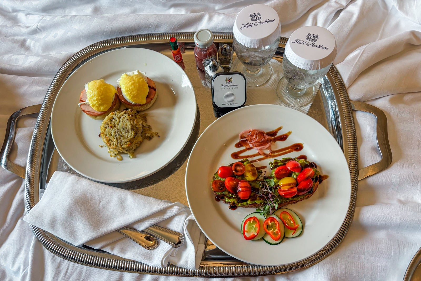 We also ordered room service breakfast one morning. We found that this menu was pretty much an abbreviated version of Criollo's weekend brunch menu. I ordered the avocado and heirloom tomato toast ($17), while my partner chose the eggs Benedict ($25).