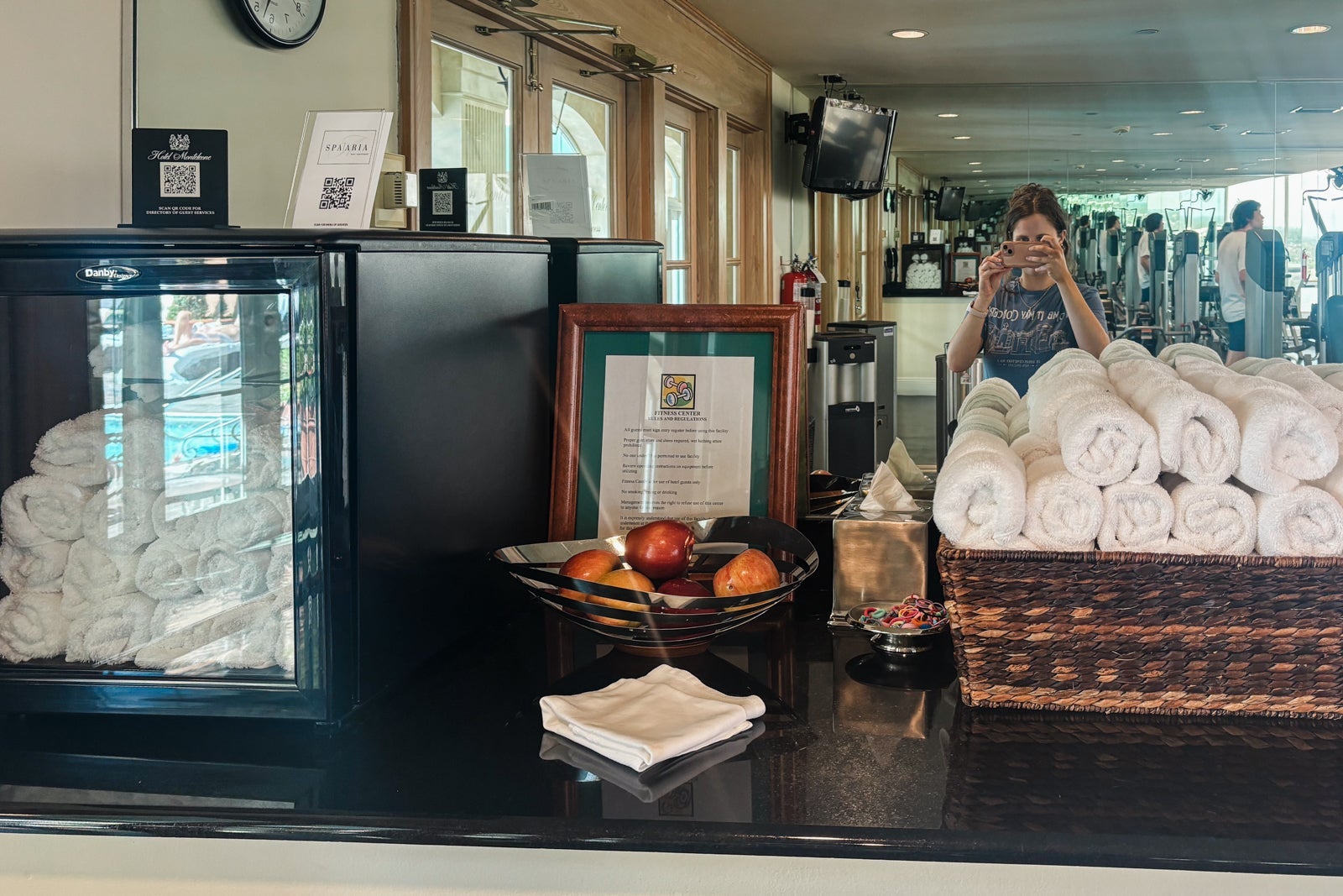 If you're into fitness and relaxation, Hotel Monteleone offers some good options. The fitness center was among my favorite hotel features. There was plenty of equipment to get in a decent workout, apples available for a pre- or post-workout snack, water, and towels on the amenities counter.