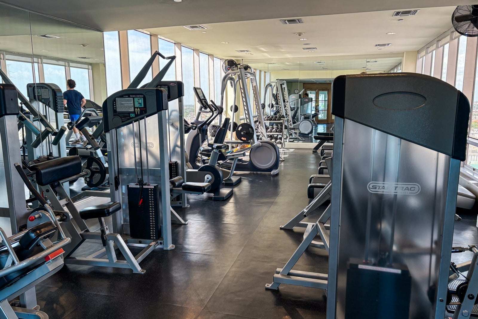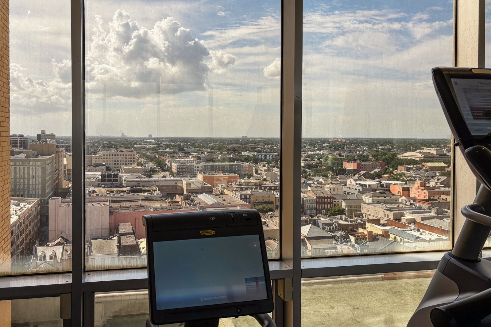 Hotel Monteleone's fitness center is on the roof, right beside the doors to the pool, and cardio machines are positioned in front of large glass windows looking out over New Orleans. This was one of the coolest views I've seen in a hotel, and I couldn't get enough of the sight from the treadmill.