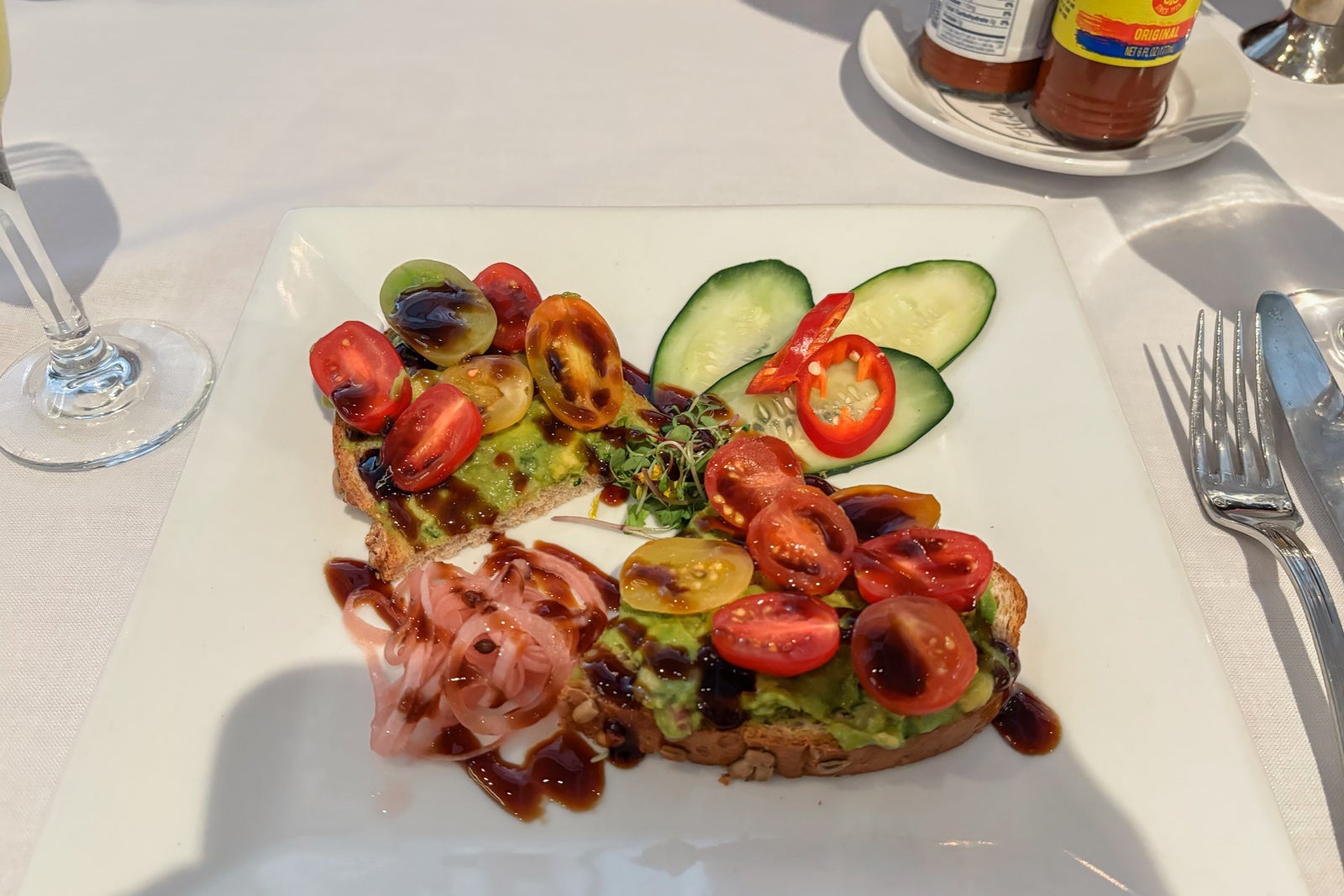 I follow a vegan diet, so my options were more limited, but that's something I've come to expect. Plus, I like avocado toast, so I was pleased with the choice I had. The avocado toast was flavorful without being too rich. My partner said his omelet was memorable because of the crawfish in the filling, which elevated it from the typical breakfast fare.