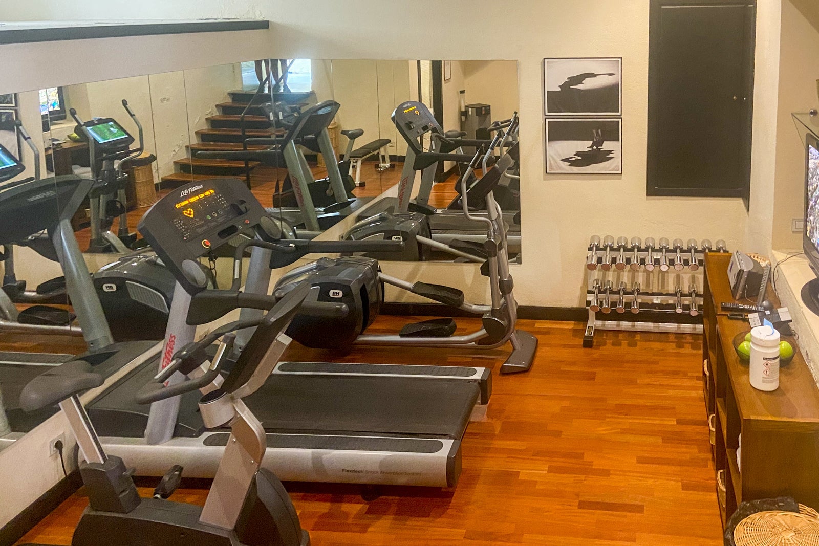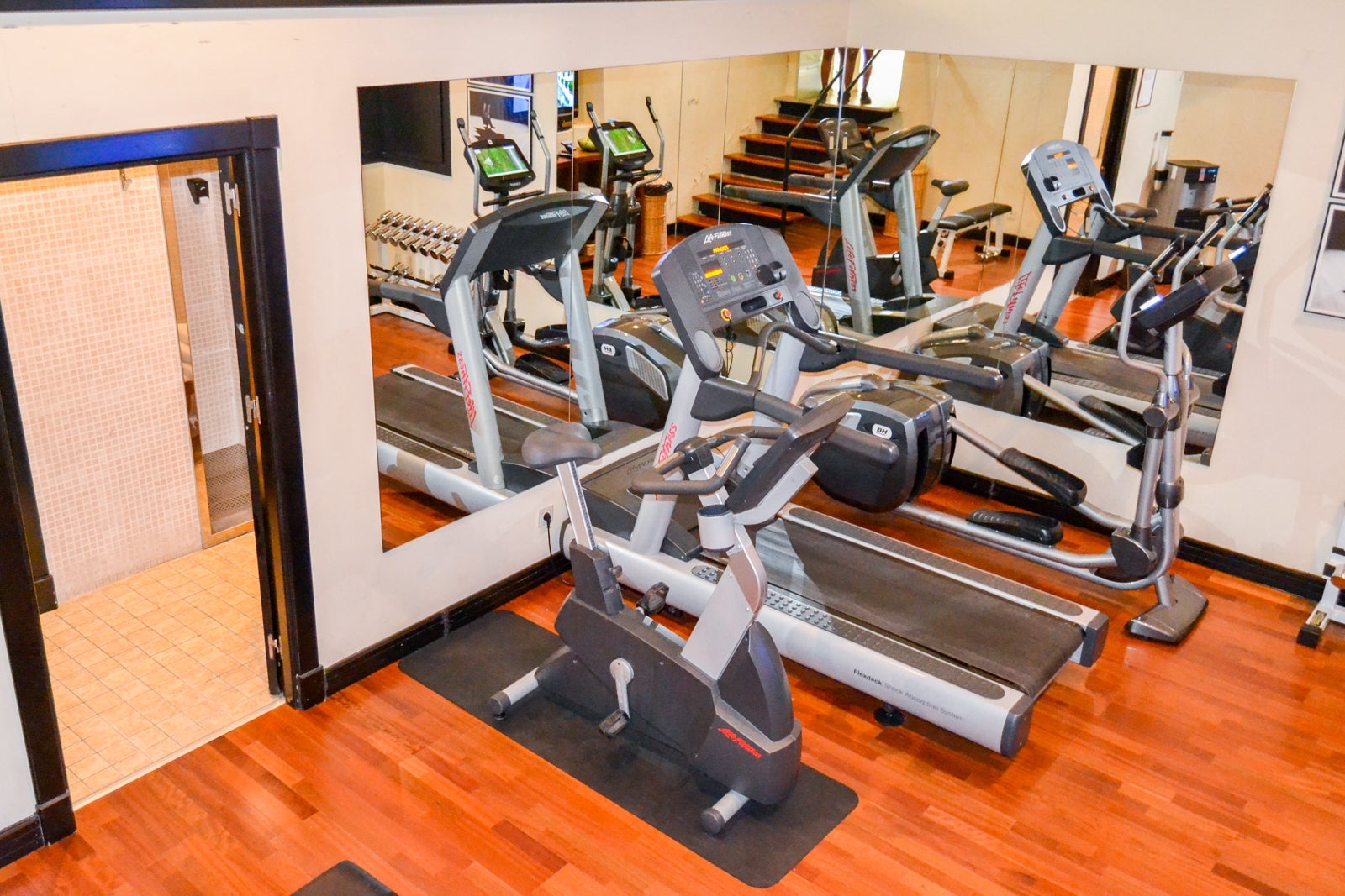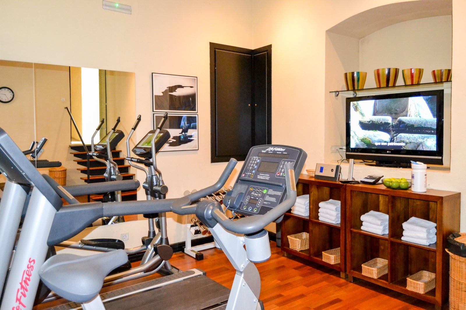 As mentioned earlier, the hotel has a workout room and Turkish bath in the crypt. Both were unoccupied when I peeked in. The workout room had a treadmill, elliptical machine, exercise bicycle, weights and a television.