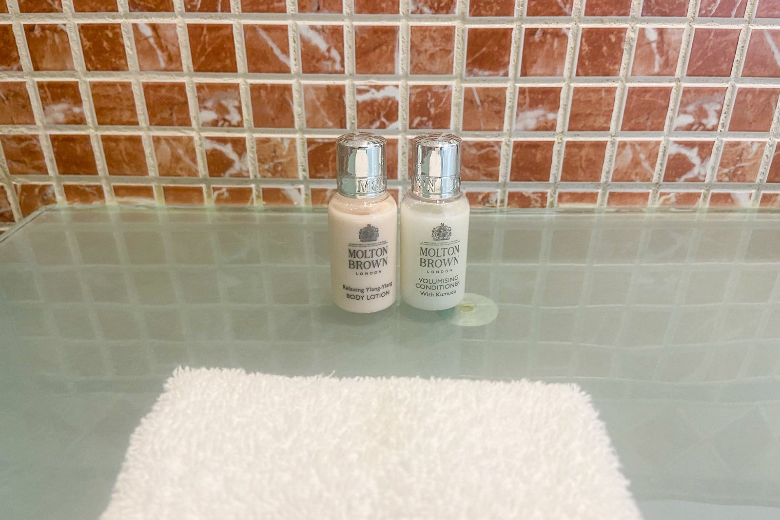 There were two bathrobes in the bathroom, but they hung over the bidet, which didn't seem like an ideal spot for them. The toilet paper roll was located behind the toilet instead of beside it — making for an uncomfortable reach when needed. In the bathtub, there was Autograph Collection-branded shower gel and shampoo. Molton Brown body lotion and conditioner were on the vanity.