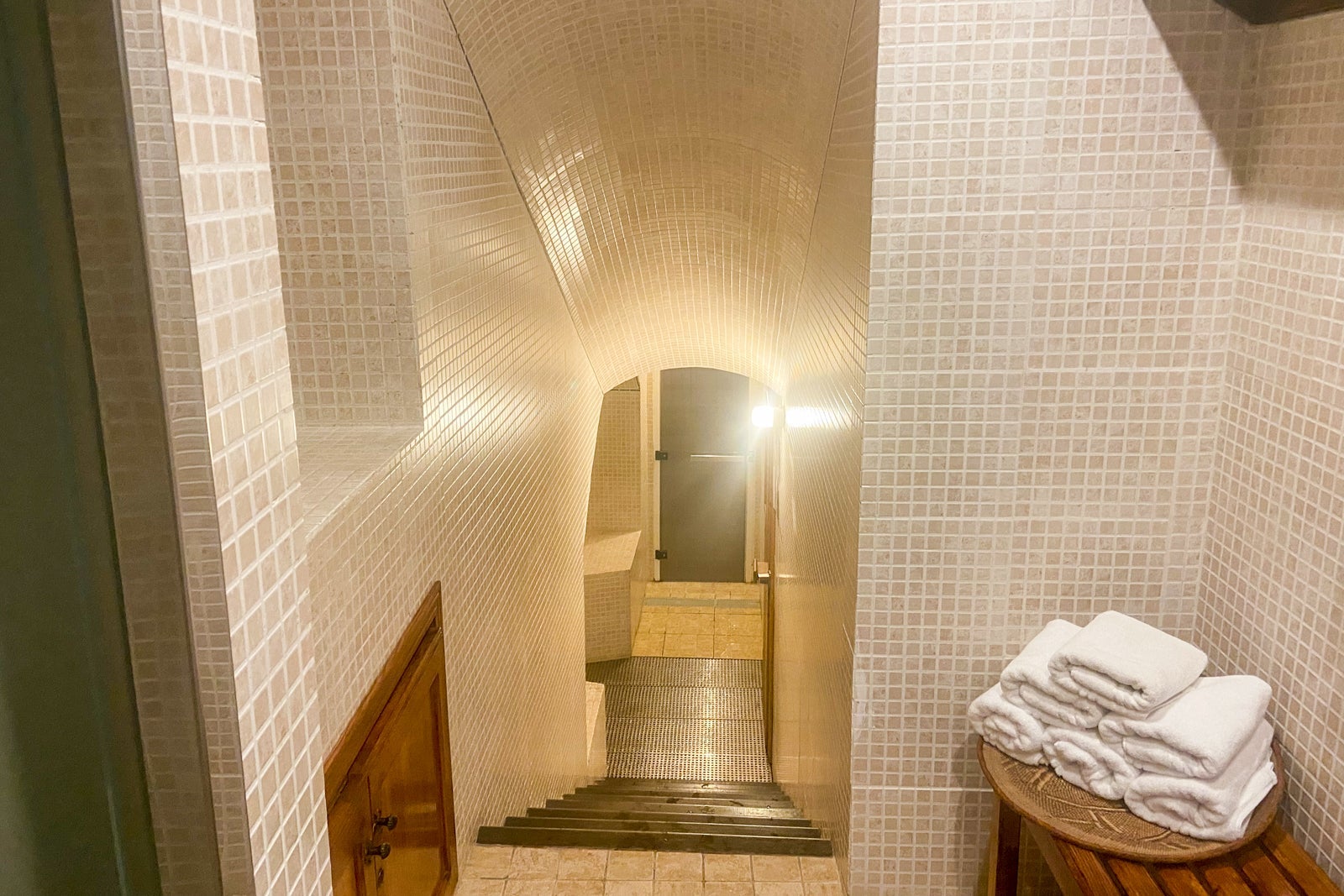 - The hotel had a small fitness room and Turkish bath (basically a steam room) located in the crypt.