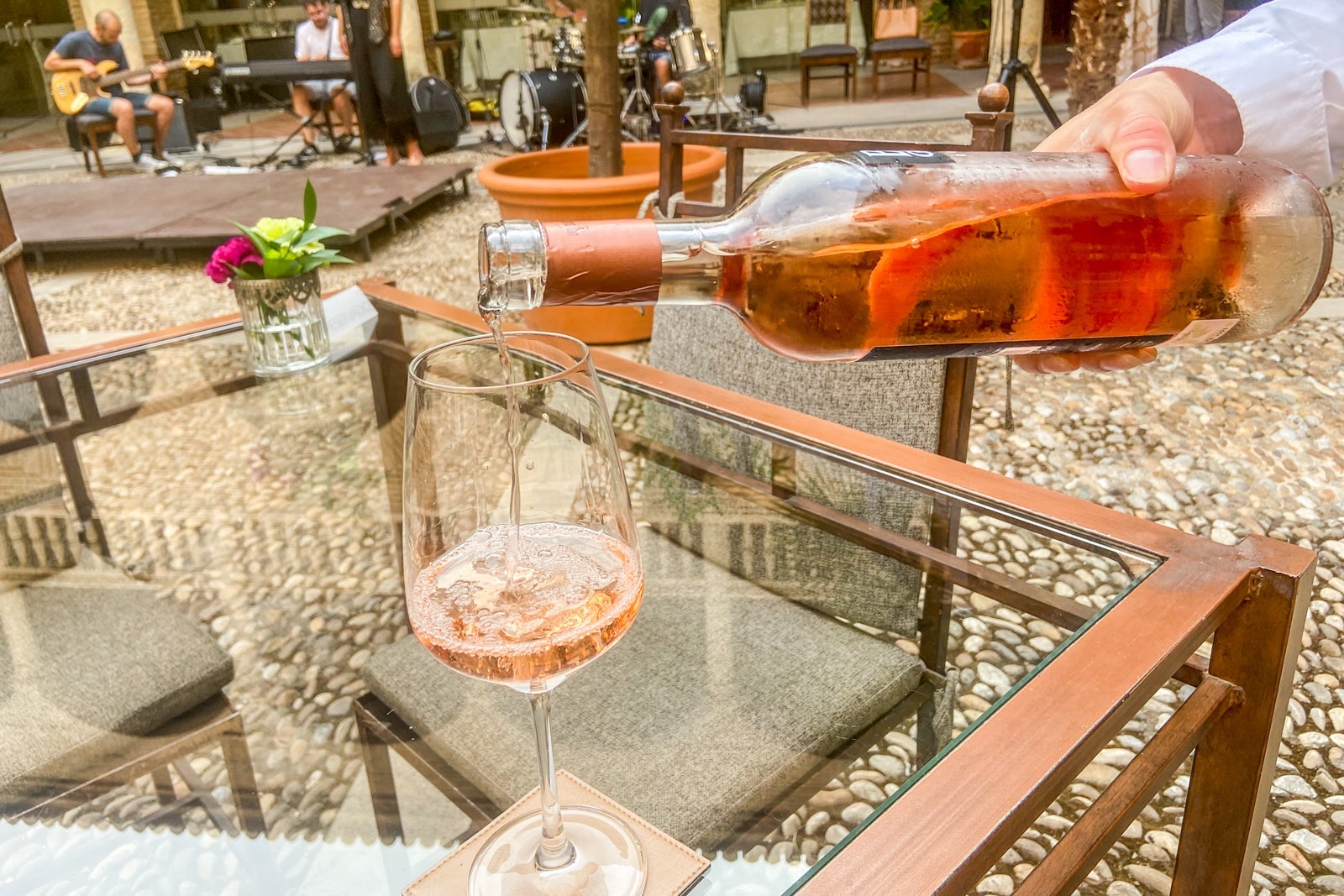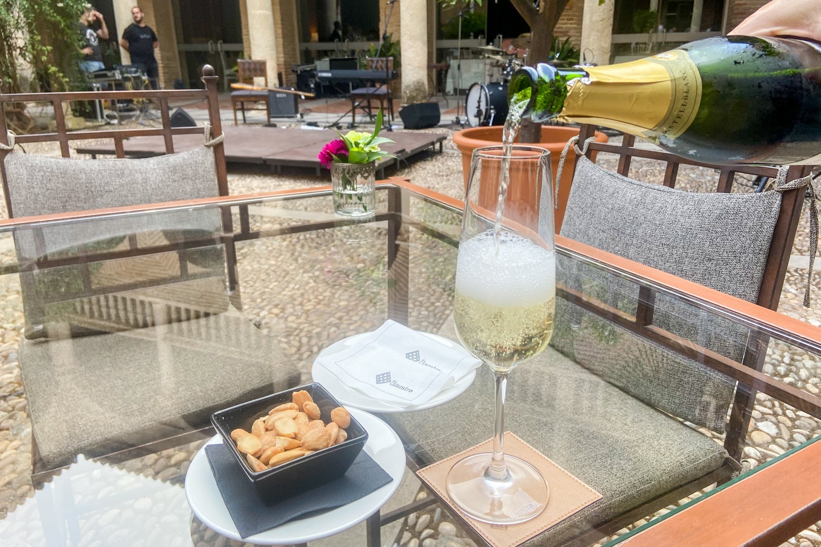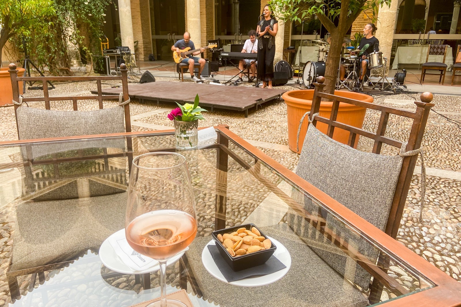 There's also a bar called The Library next to El Claustro, and it appeared to be a relaxing and cozy place to have cocktails. During the free flamenco show I attended, I ordered (and paid for) a glass of rose wine and a glass of cava, a Spanish sparkling wine. I was given almonds to enjoy with my drinks.