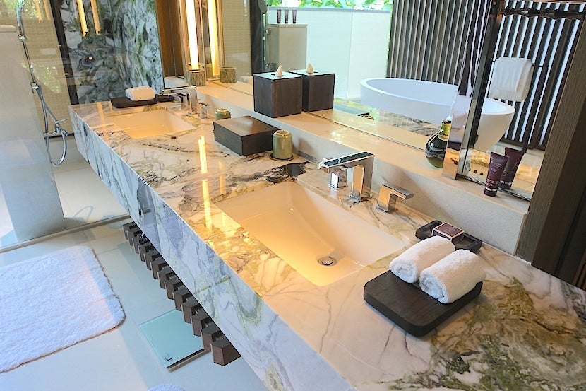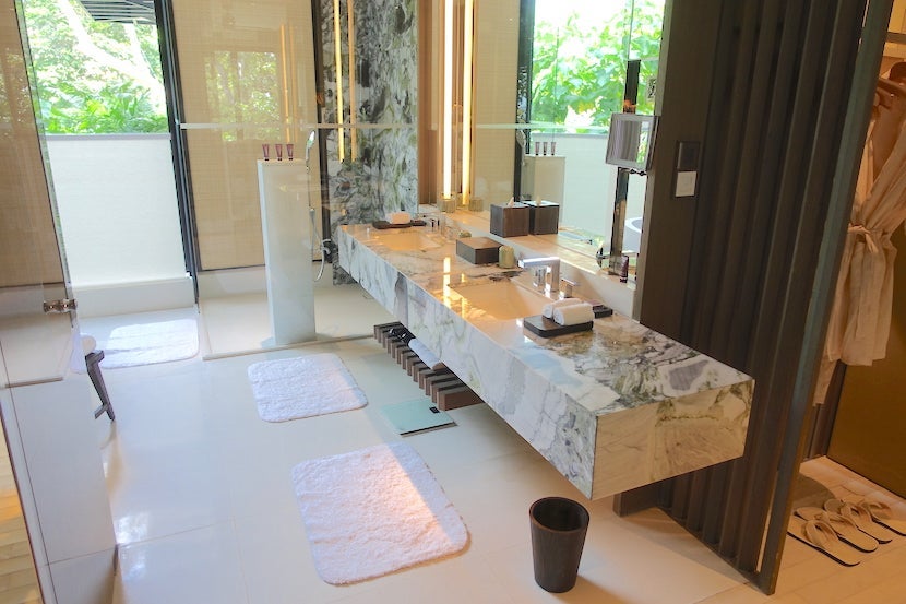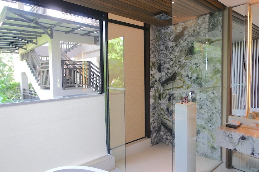 Overall, I really liked the look and feel of my suite. It felt so airy, bright and spacious. The wooden slats and many windows gave it the feeling of a luxurious treehouse, while the linens and upholstery and the other high-end touches like marble accents in the bathroom were gorgeous. I would have liked more privacy in the bathroom so I could have kept the shades open and let in natural light, though.