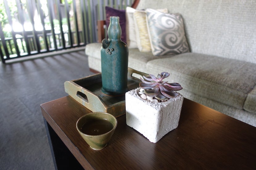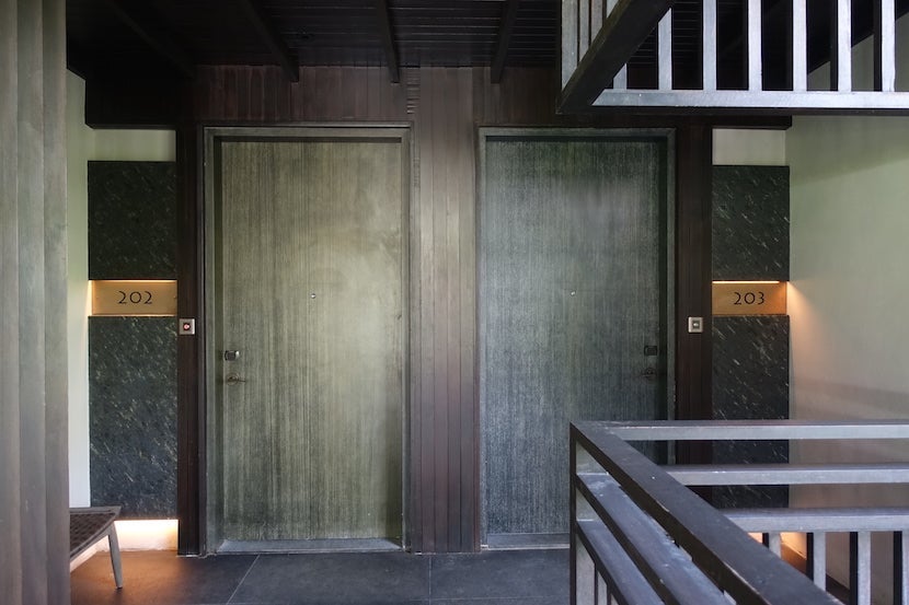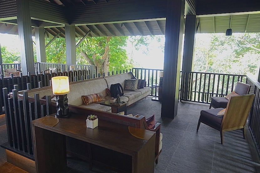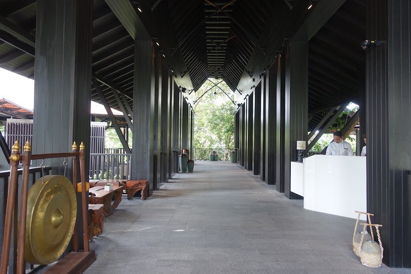 There was no real lobby to speak of. Rather, the staff greeted guests at the porte cochère, rang a welcome gong, then escorted them along the so-called Walkway of Wishes into one of two outdoor seating areas. According to the hotel site, guests are asked to write their wishes down on a stone then place it into the water of the fountain here, but I was simply taken to the seating area for a cup of calamansi: coconut and hibiscus juice.