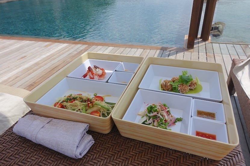 I had lunch by the pool the second day and enjoyed a salad of shredded green papaya with long beans, chilies, peanuts, tomato and shrimp; and crispy fried chicken balls with onion, coriander and chilies. That lunch, with a glass of wine, was also around $50.