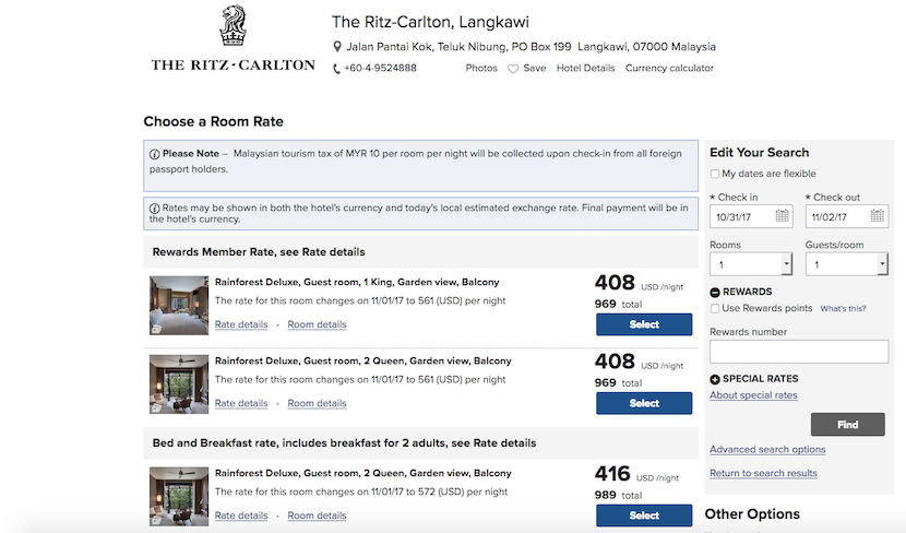 My two-night stay at the Ritz-Carlton, Langkawi, would have cost $989 for the starting category of a Rainforest Deluxe Room with a king bed, garden view and balcony.