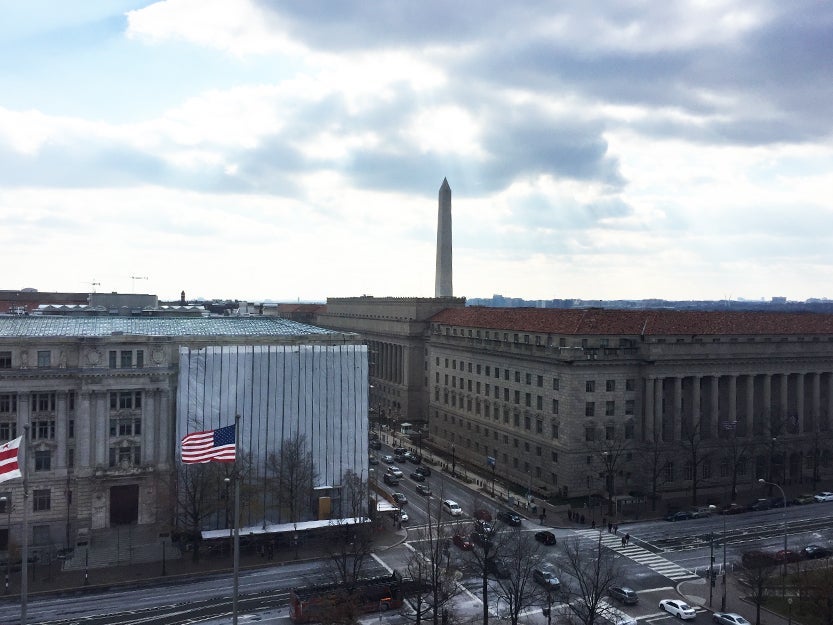 So we weren't off to the most impressive start, but I'd done my research on this property and couldn't wait to see the views from our 10th-floor room. They did not disappoint. Our south-facing room looked out on the White House Visitor Center and the Washington Monument. (Because of DC's building-height restrictions, almost every building offers a view of the city's finest landmarks.)