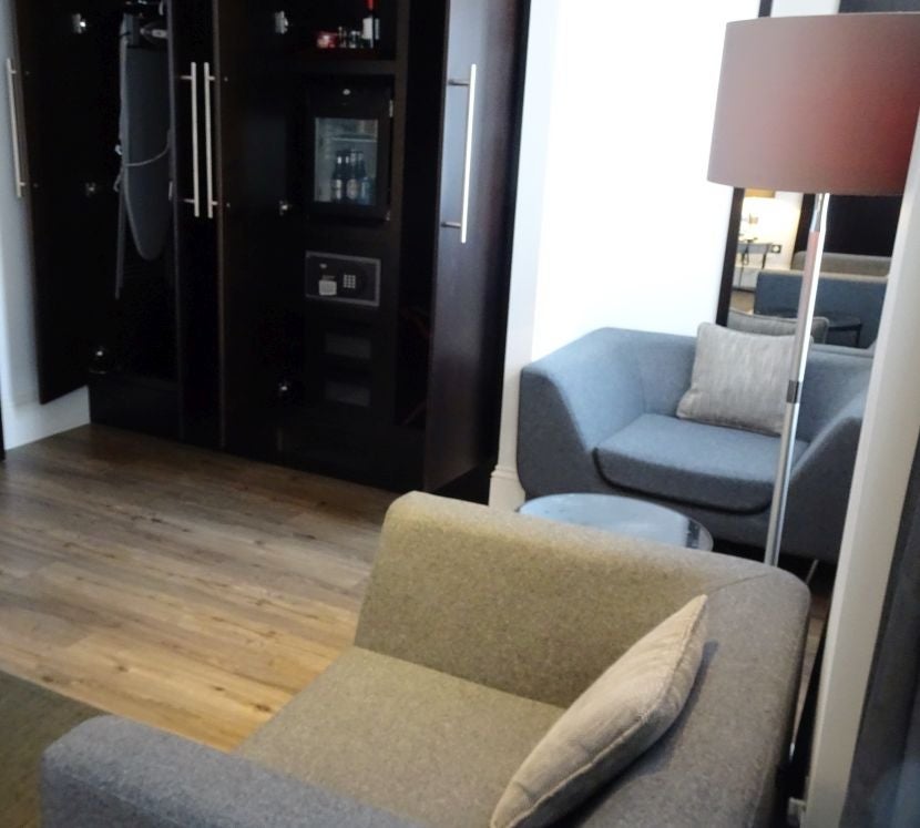 Executive rooms were accessed by a separate elevator, which required a walk across the domed lobby, past some conference rooms and up a few stairs. I noted the scent of cinnamon streaming from the vent, and later saw why — it was covering the smell of piled rubbish on the other side of a service door.The tiny lift brought me to the second level, where it was easy to find my room — it was directly across from the lift and it was the only one on the floor. Of the hotel's 74 rooms, three were executive, one on each floor.I welcomed the isolation, but it might have concerned other safety-minded travelers. With its small hallway, there were no windows, no nearby staff members and no noticeable security cameras.The room itself was tasteful and modern, but considering this was a double upgrade from what I thought I'd originally booked, not quite impressive in dimensions. You have to grade the size and price of London hotel rooms on a curve, and I've certainly stayed in my share of London rooms where I paid $200 to lie on the bed and touch the wall with my toes. And yet I would have wanted more space than this for $900.Still, the bed was huge, the furniture contemporary, and the dressmaker form creepy.