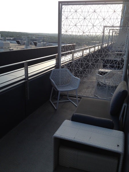 The suite also had a great balcony overlooking a little rooftop lounge of the hotel and beyond to the lake.