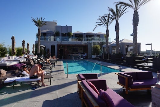 The rooftop boasts a small pool and bar with daybeds, cabanas and purple-upholstered lounges. On summer weekends, expect a party atmosphere with a DJ where non-hotel guests can reserve cabanas and join in the revelry.