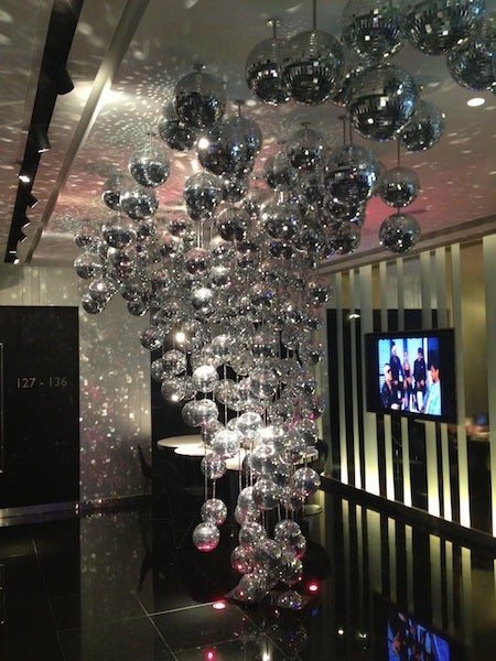 The lobby's cool discoball lighting fixture.