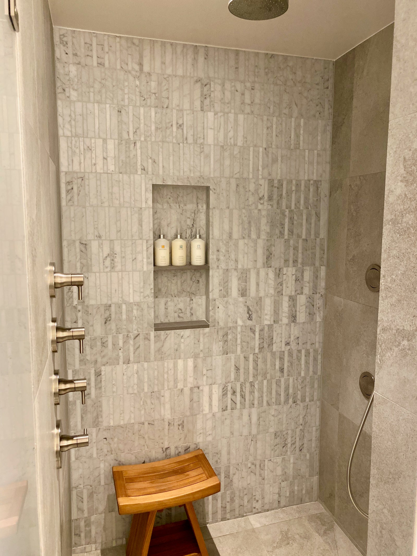 The double-vanity bathroom featured a gorgeous walk-in shower (with six water jets), a freestanding tub and a separate toilet. Toiletries were in large, reusable containers — perhaps one of the biggest health hazards for a COVID-era stay.