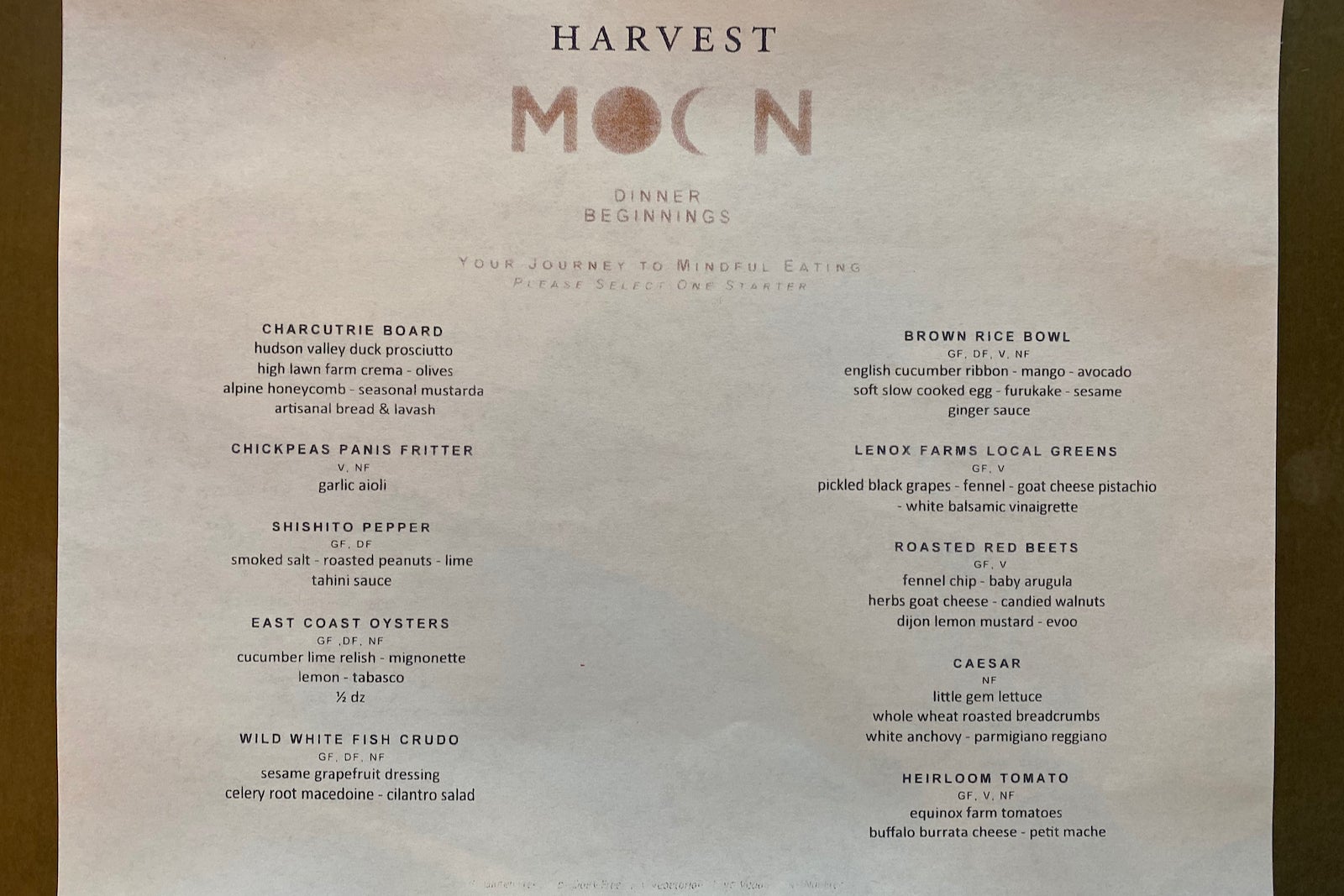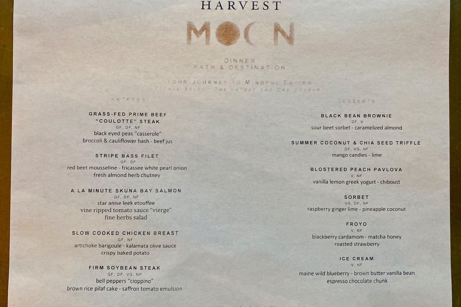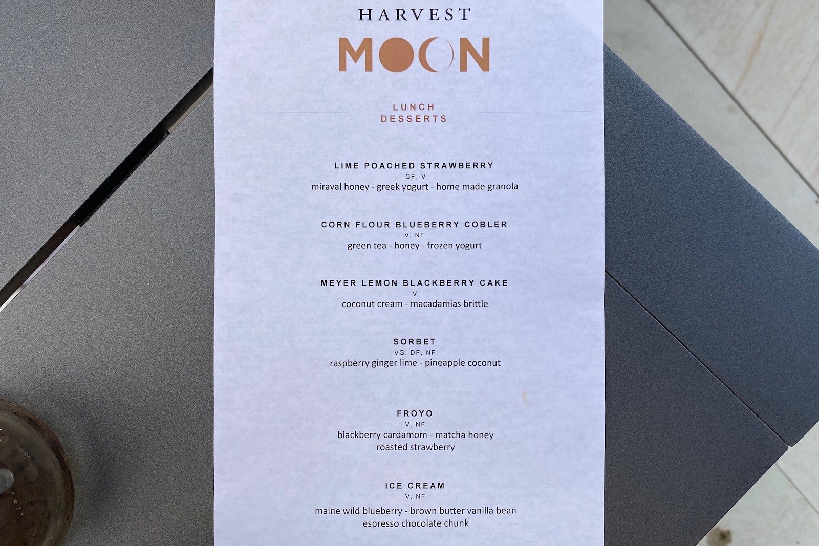 All meals were served in the Harvest Moon restaurant, which features both indoor and outdoor seating. Portions were quite small, so make sure to order a lot.