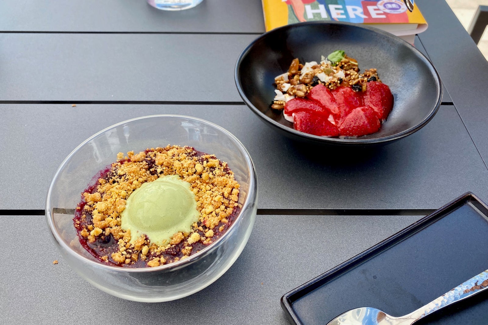 Some of our favorite dishes were the shishito peppers, homemade veggie burger, striped bass filet, all the tasty and fresh salads and the delectable (and healthy) desserts.