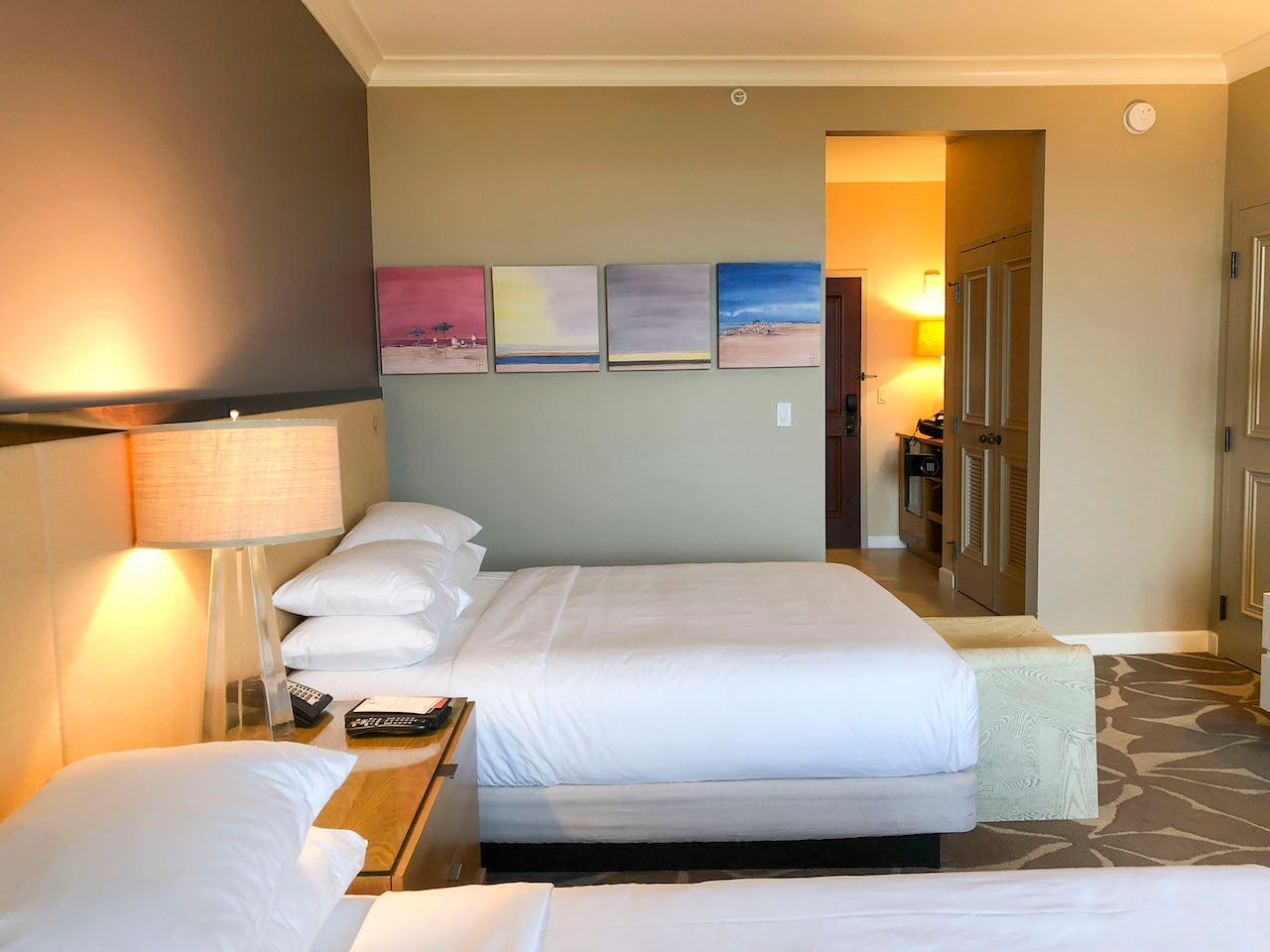 This was a 454-room hotel with an impressively large lobby. We arrived on a weekend day in the late afternoon, and there was no delay checking in and getting a rundown of the amenities and activities. Our Globalist status did not luck us into an upgraded suite, but that was just fine, as rooms with two real beds work better for our family these days than a suite with just one bed.
