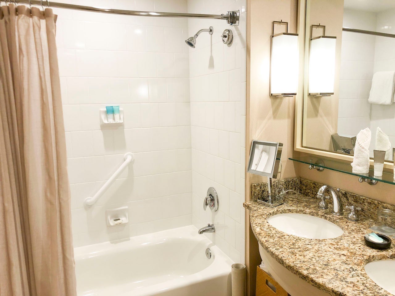 A few final points about the room: The air conditioning was easy to control and good at cooling down the room, which is not a given in hot and humid Florida. On a less positive note, there was a strange humming noise that came and went for the duration of the stay, and the light sensor on the floor went haywire and lit the room up randomly throughout the night to the point that we had to cover it up with pillows. The hotel's internet also frequently made you log back in, which was a hassle with so many devices to connect.